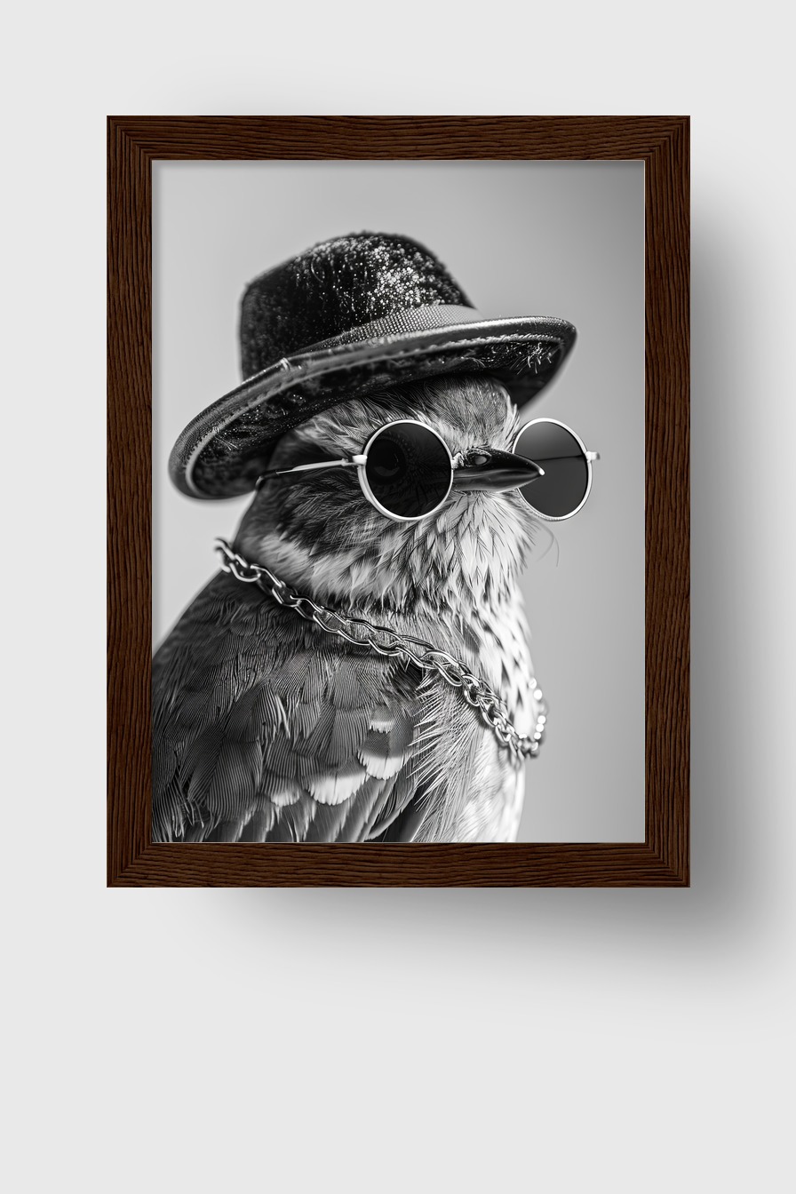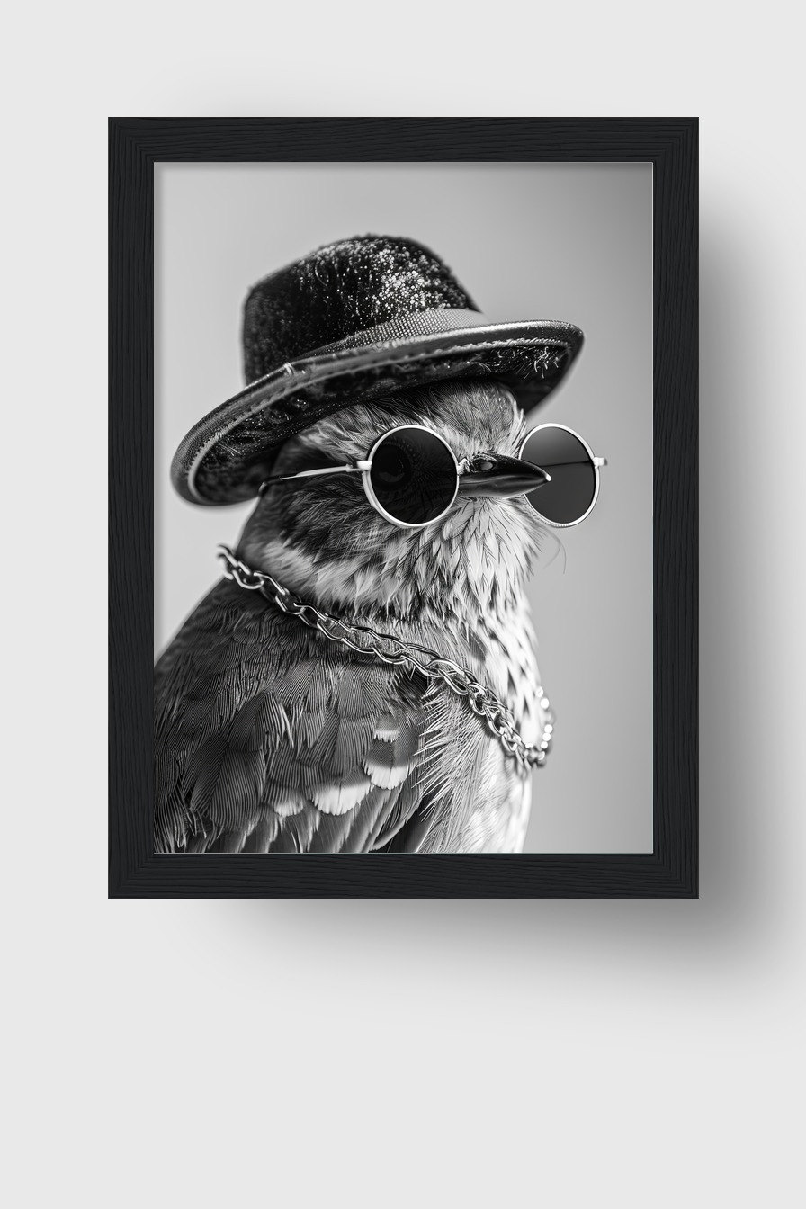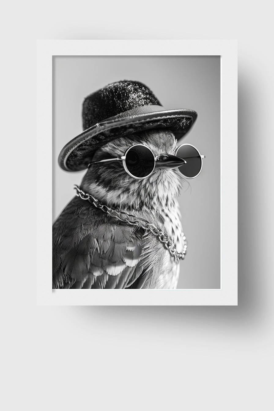 Fotografie Poster Vogel Sonnenbrille schwarz-weiß