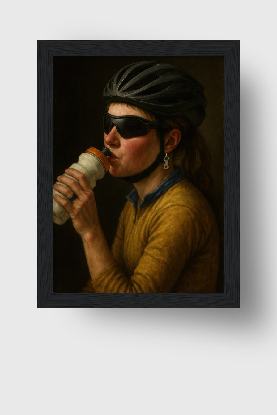 Malerei Poster Frau Fahrradhelm Porträt realistisch
