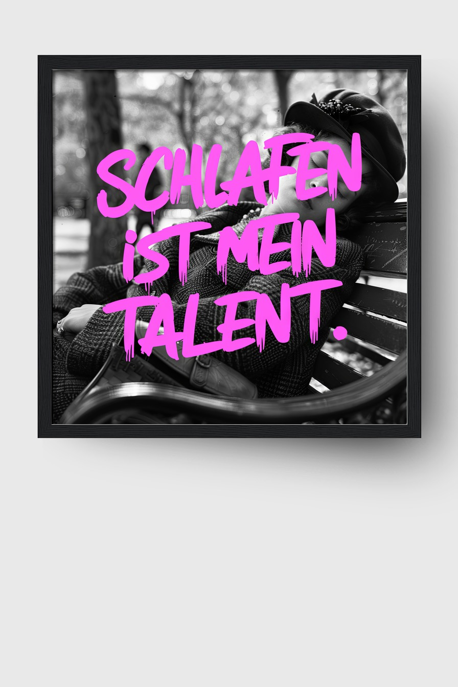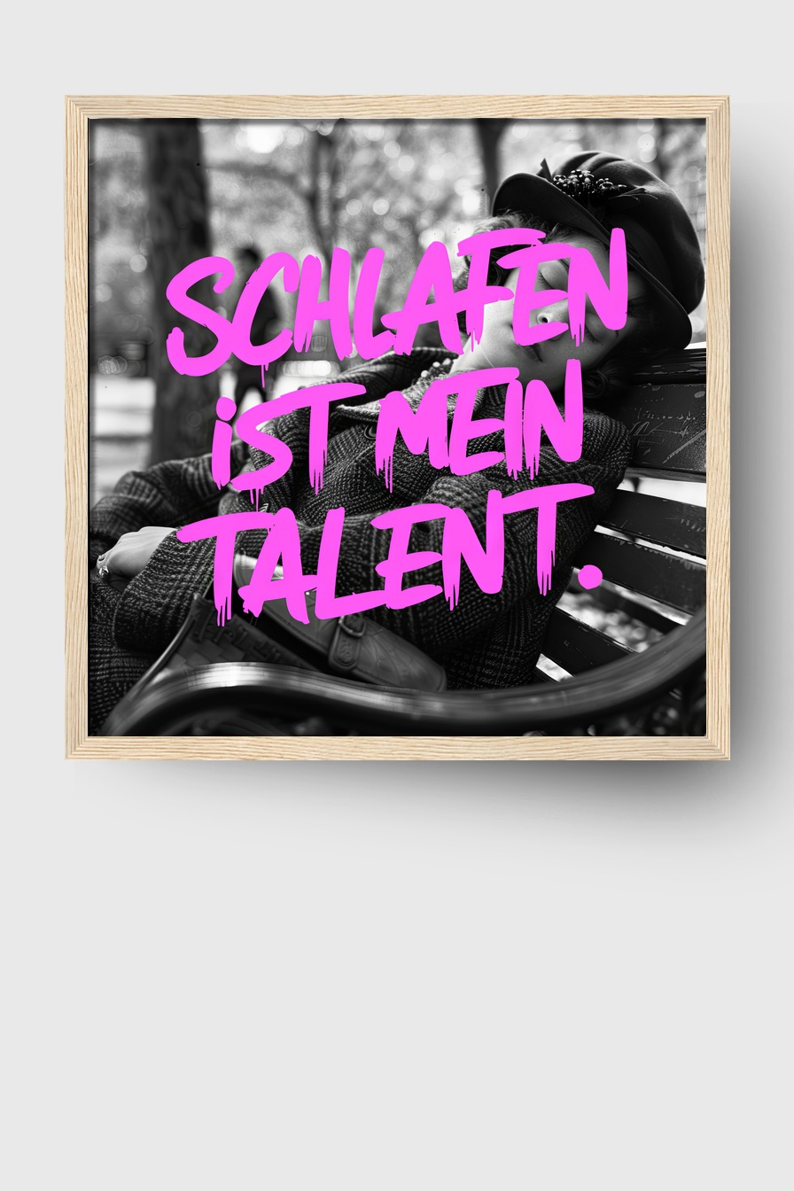 Das Motiv wirkt im Raum ruhig und lädt zum Innehalten ein. Die Bank und das Umfeld bleiben unscharf.
