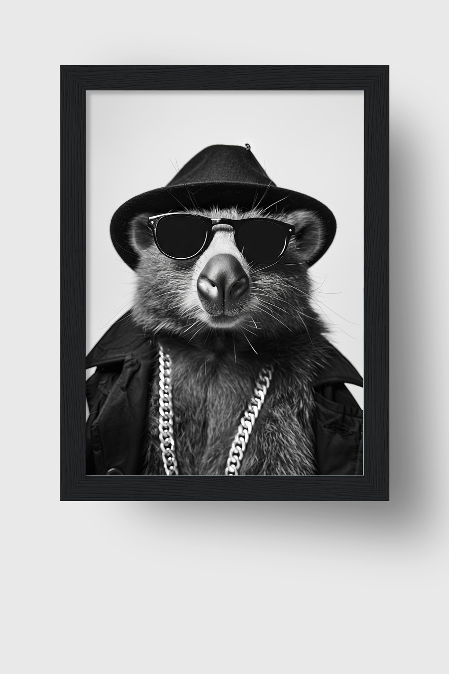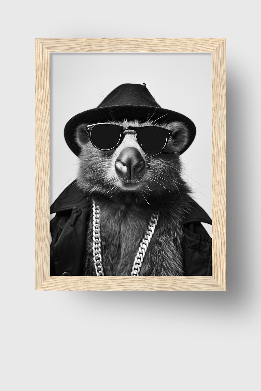 Fotografie Poster Bär Hut Kette schwarz-weiß
