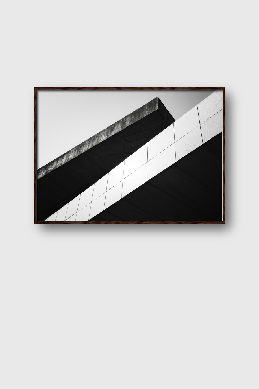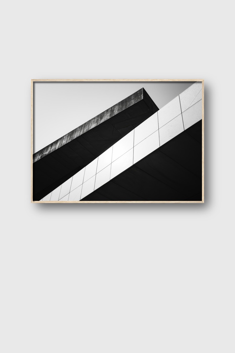 Minimalistische Brücke mit starken Hell-Dunkel-Kontrasten. Räume akzentuiert durch Schatten auf der Oberfläche.