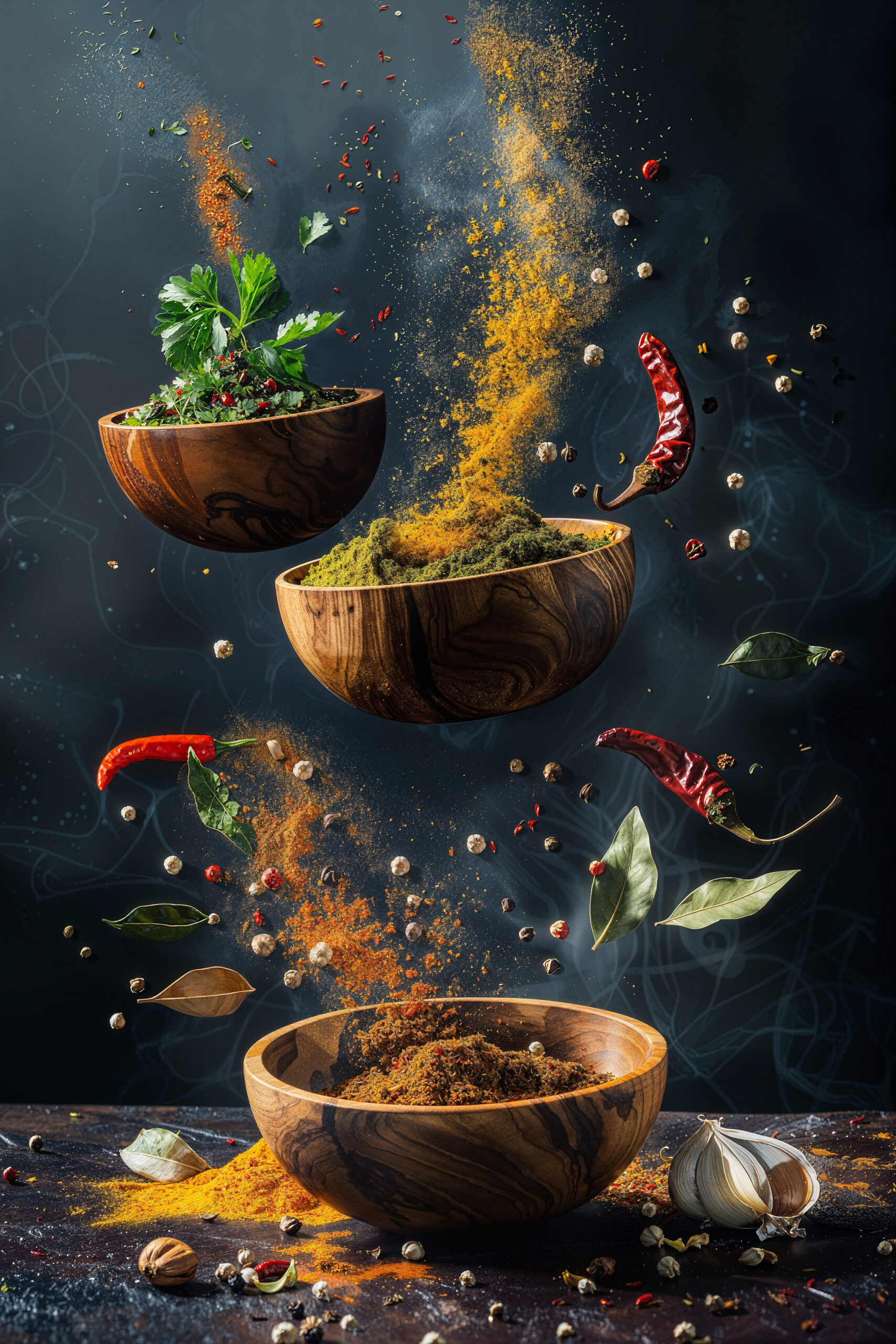 Im Raum entfaltet sich die Energie der Gewürze, sie breiten sich aus und verleihen jeder Ecke eine spürbare Würze. Die Kombination aus warmen Tönen und organischen Formen macht den Blickfang spannend und natürlich zugleich.