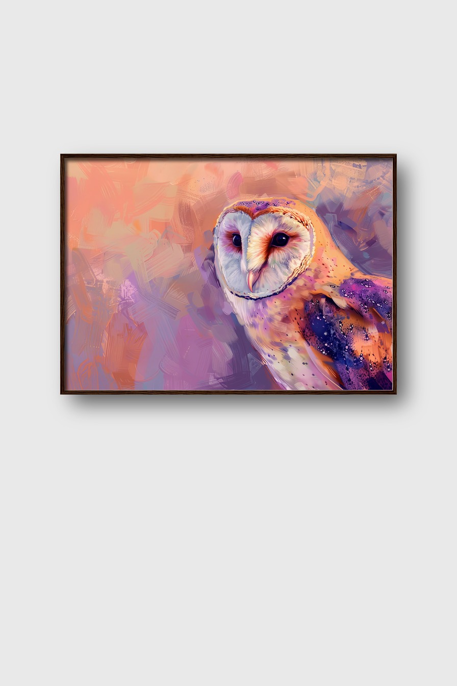 Digitale Kunst Poster Schleiereule farbig Porträt detailliert