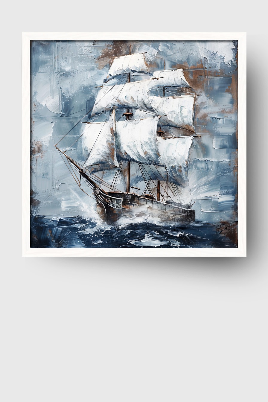 Malerei Poster Segelschiff Sturm maritime dunkelblau weiß