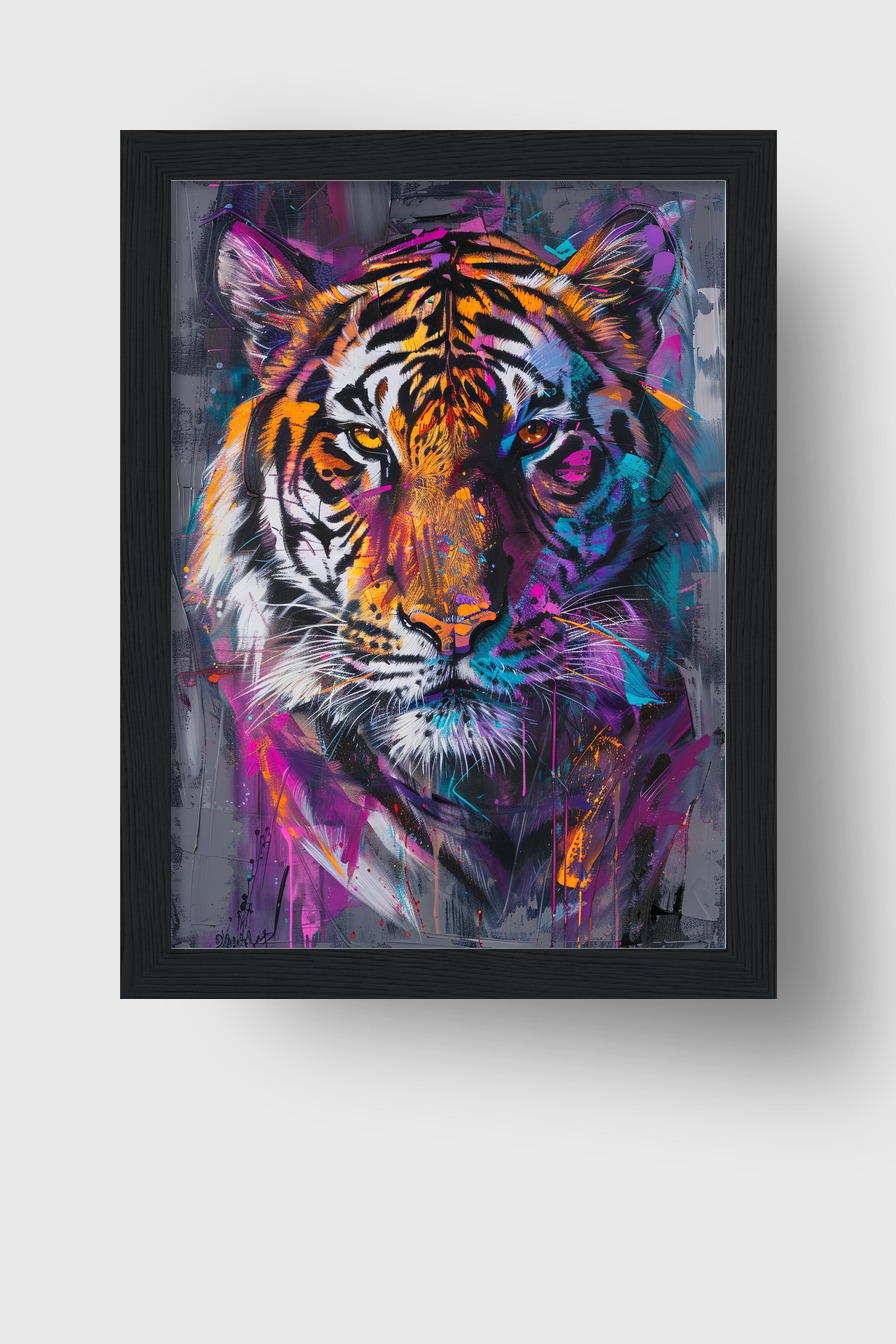 Tiger Kopf bunt Gerahmt