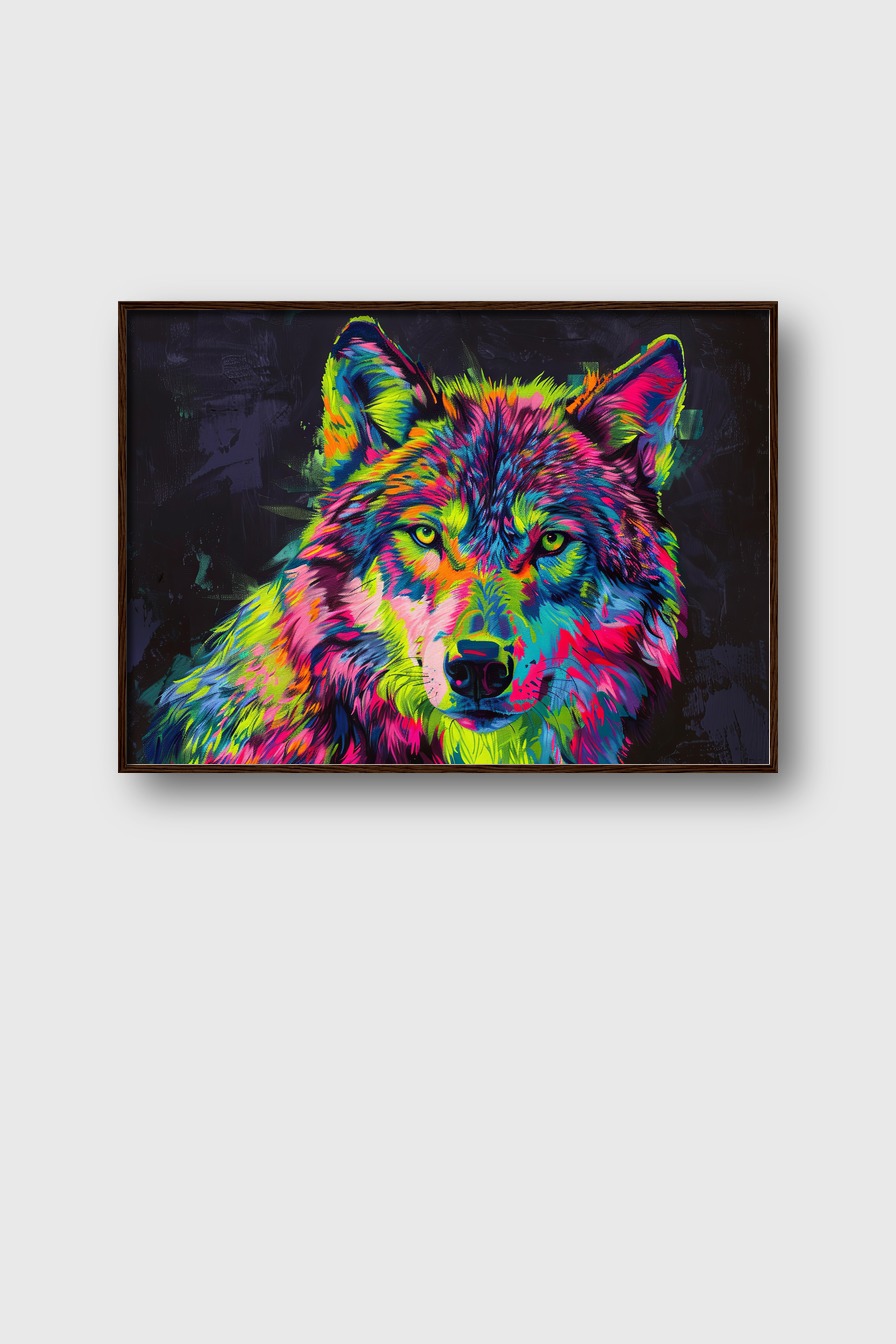 Digitale Kunst Poster Wolf bunt farbig neon