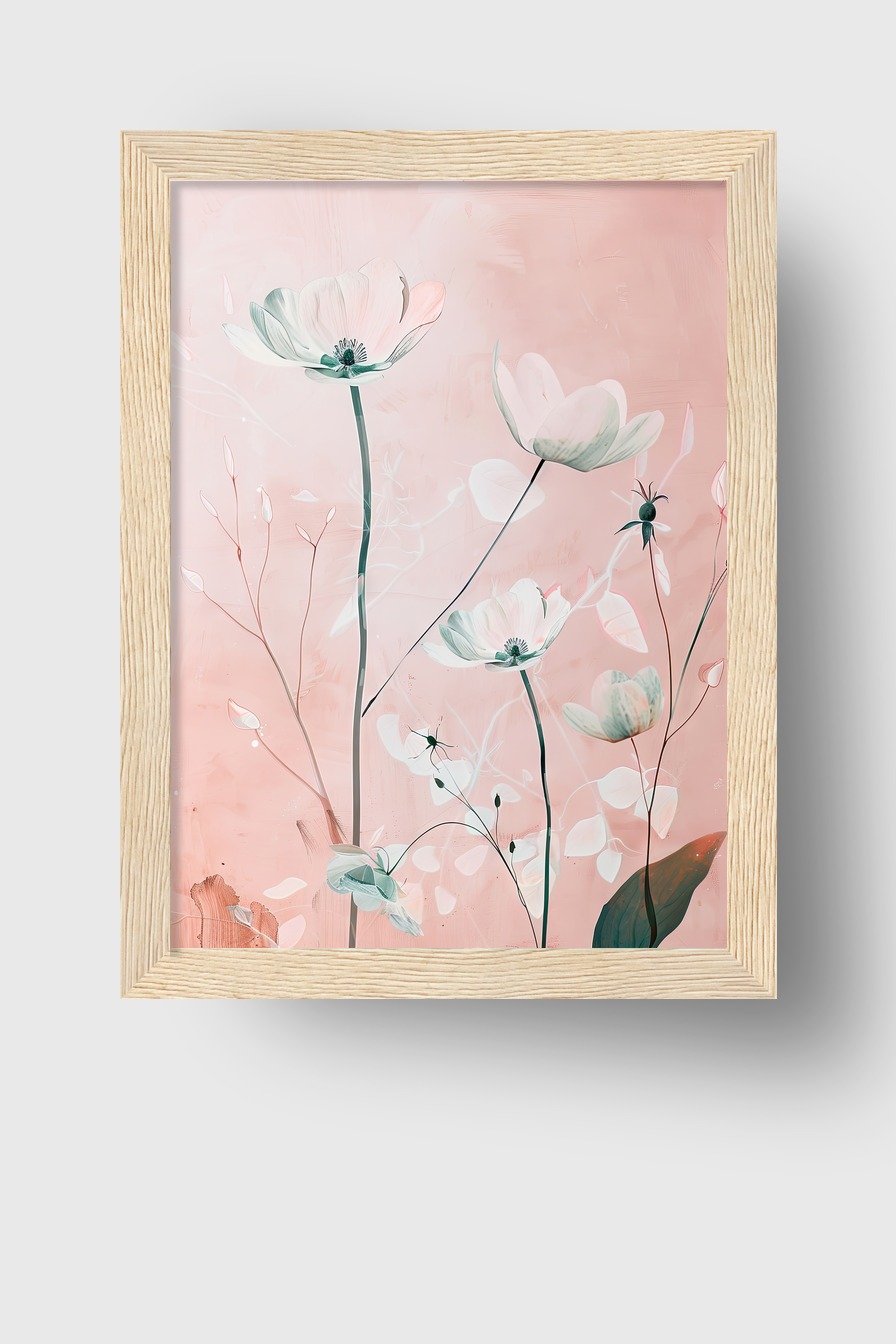 Im Raum bringt die Darstellung der hellen Anemonen einen Hauch von Leichtigkeit und Eleganz, die pastellfarbenen Nuancen fügen sich harmonisch in helle Einrichtungsstile ein.