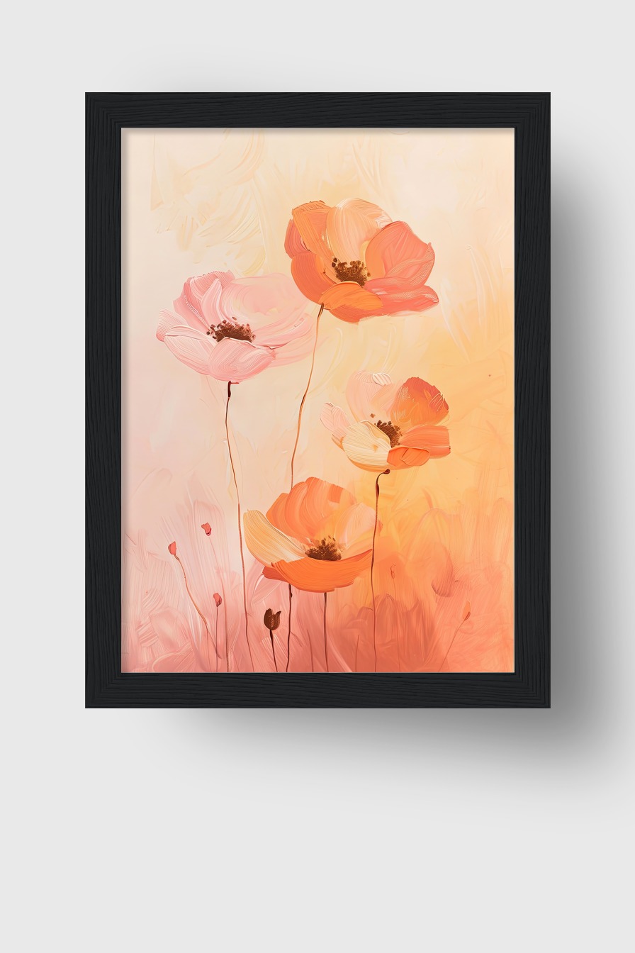 Sanfte Mohnblumen wirken im Raum wie ein freundlicher Blickfang. Die warmen Farben beleben jede Wand ohne zu dominieren. Dazu die feinen Umrisse der Stiele, die dem Motiv Tiefe verleihen, schaffen Balance und Ruhe.