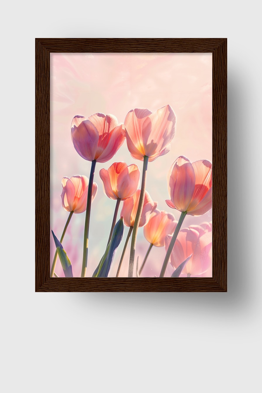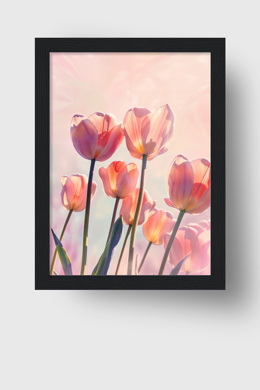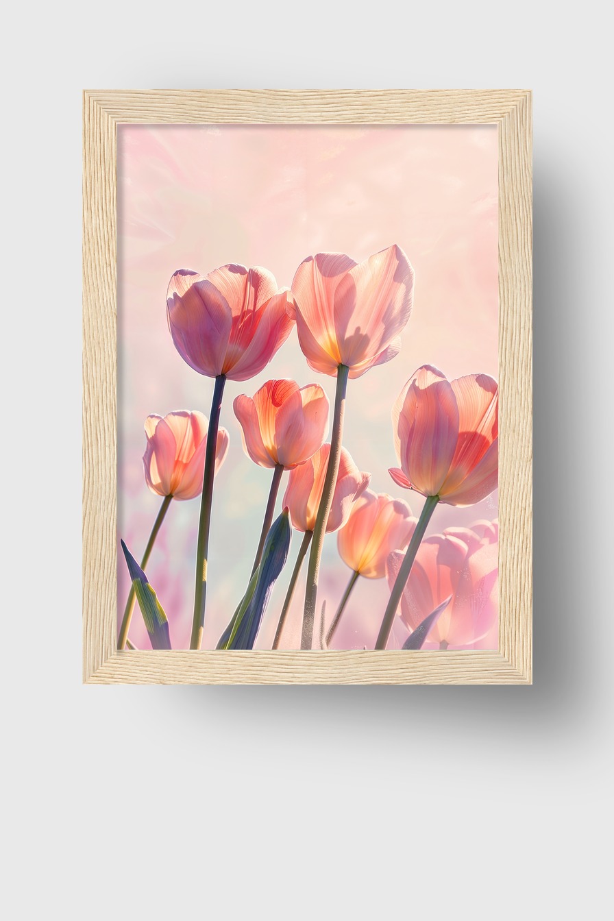 Im Raum lässt das Bild mit seinen feinen Licht- und Schattenspielen die Tulpen fast lebendig wirken, was eine sanfte und friedliche Atmosphäre schafft. Die subtile Farbgebung bringt Natürlichkeit und zarte Eleganz ins Umfeld.