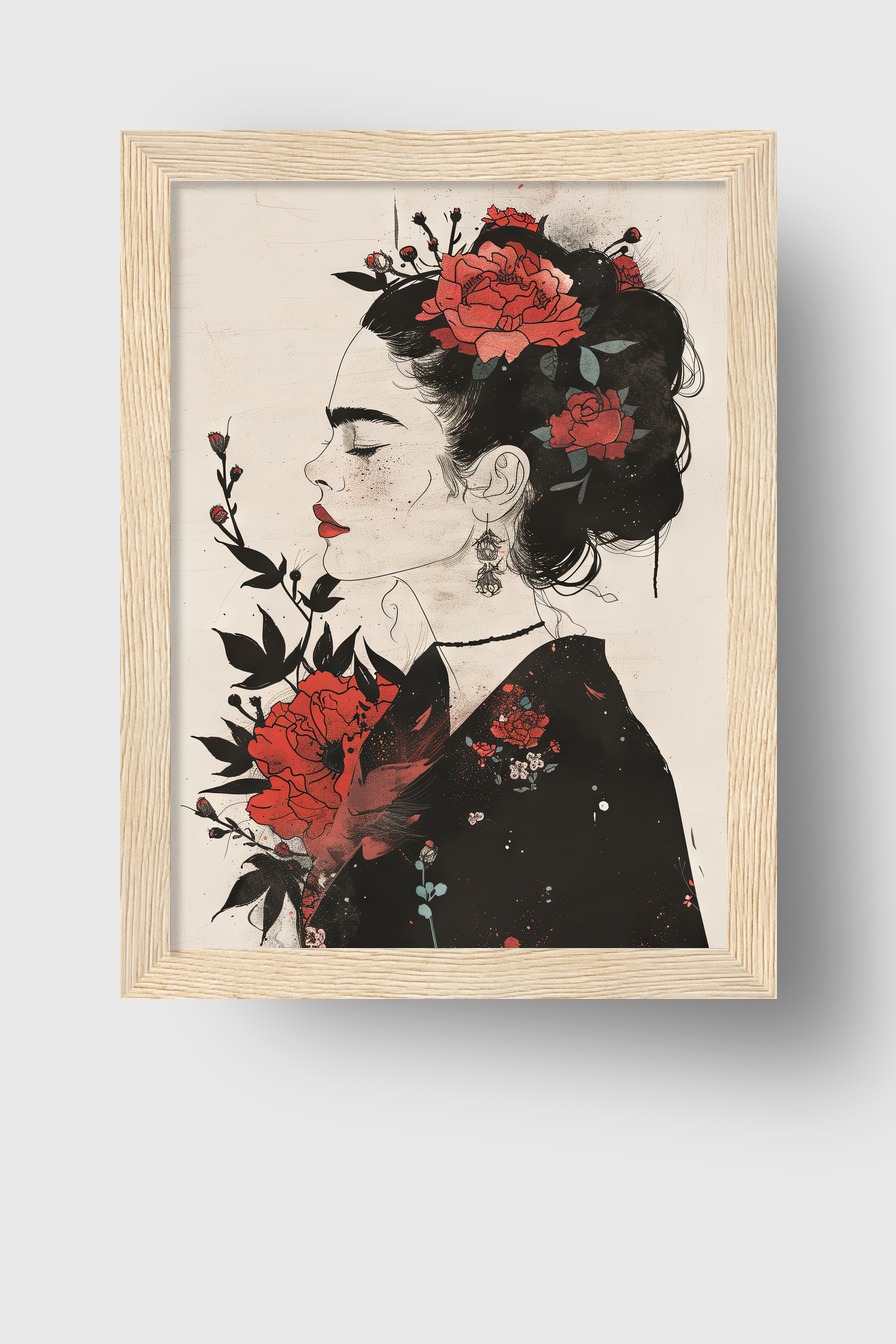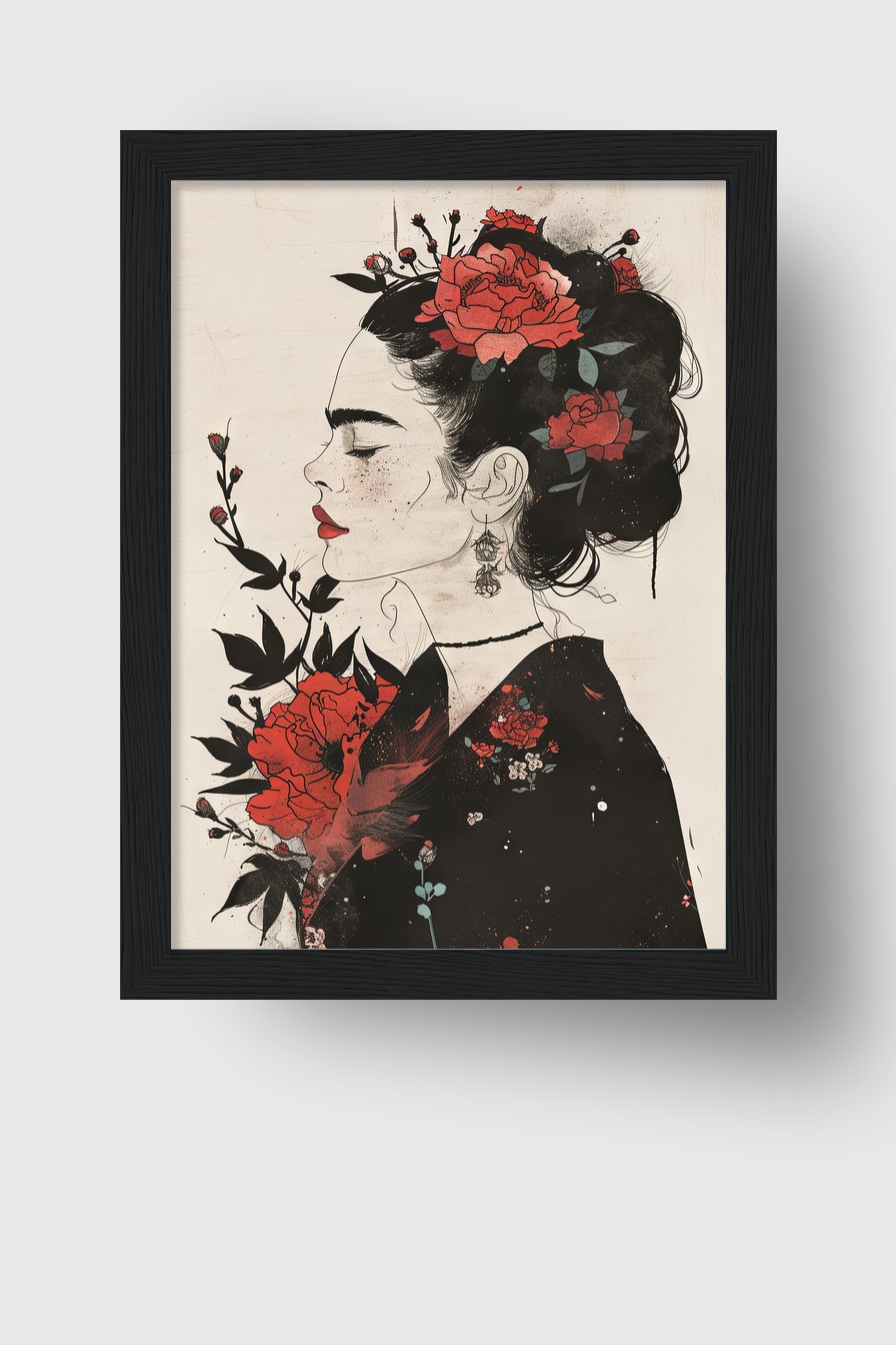 Frau mit Rosen Gerahmt