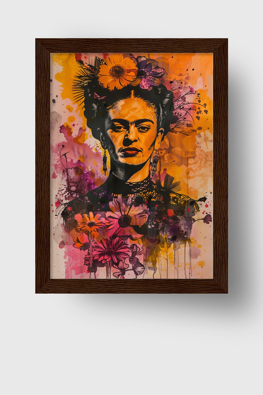 Pop Art Poster Frida Kahlo Portrait bunt orange pink