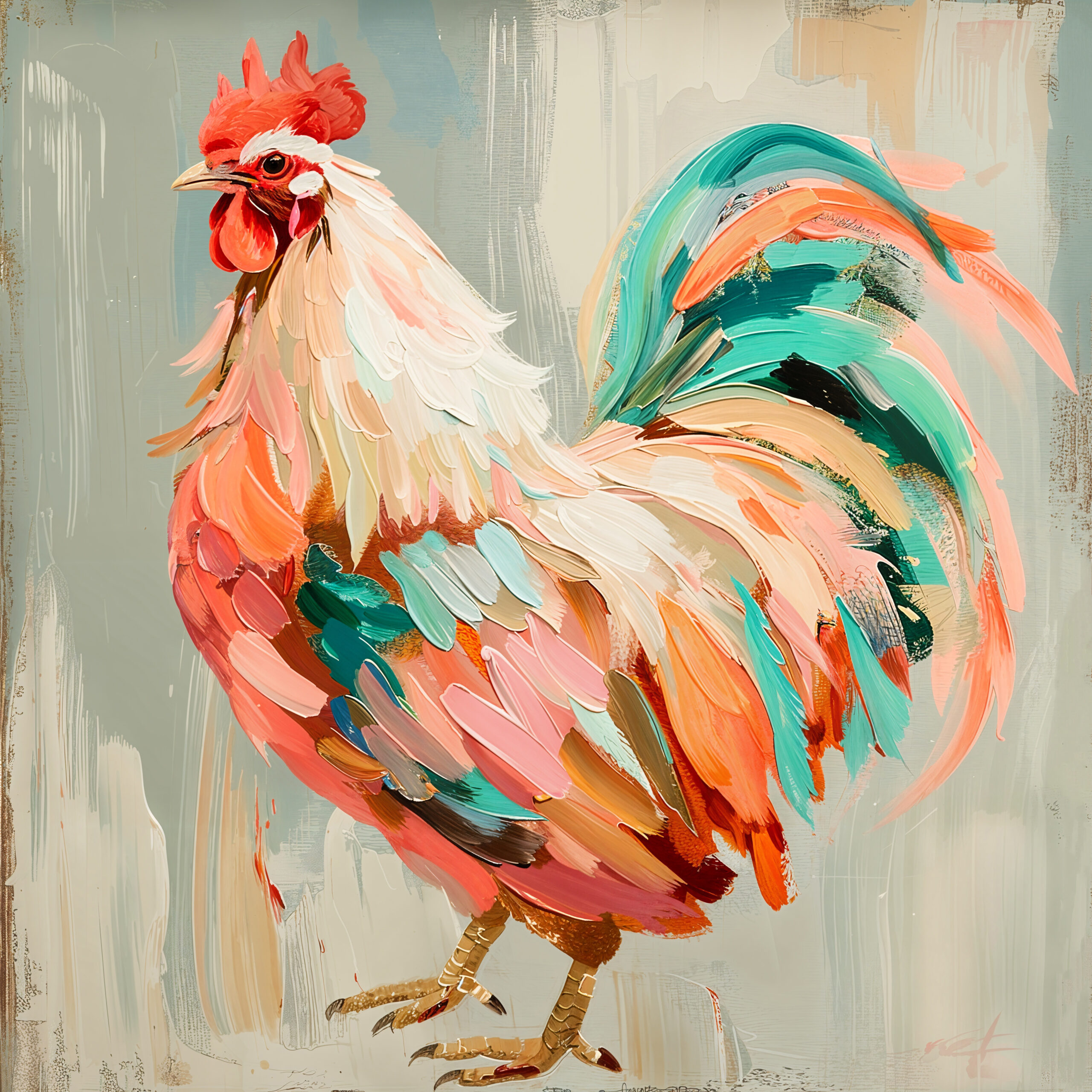Malerei Poster Hahn farbig bunt Pinselstriche