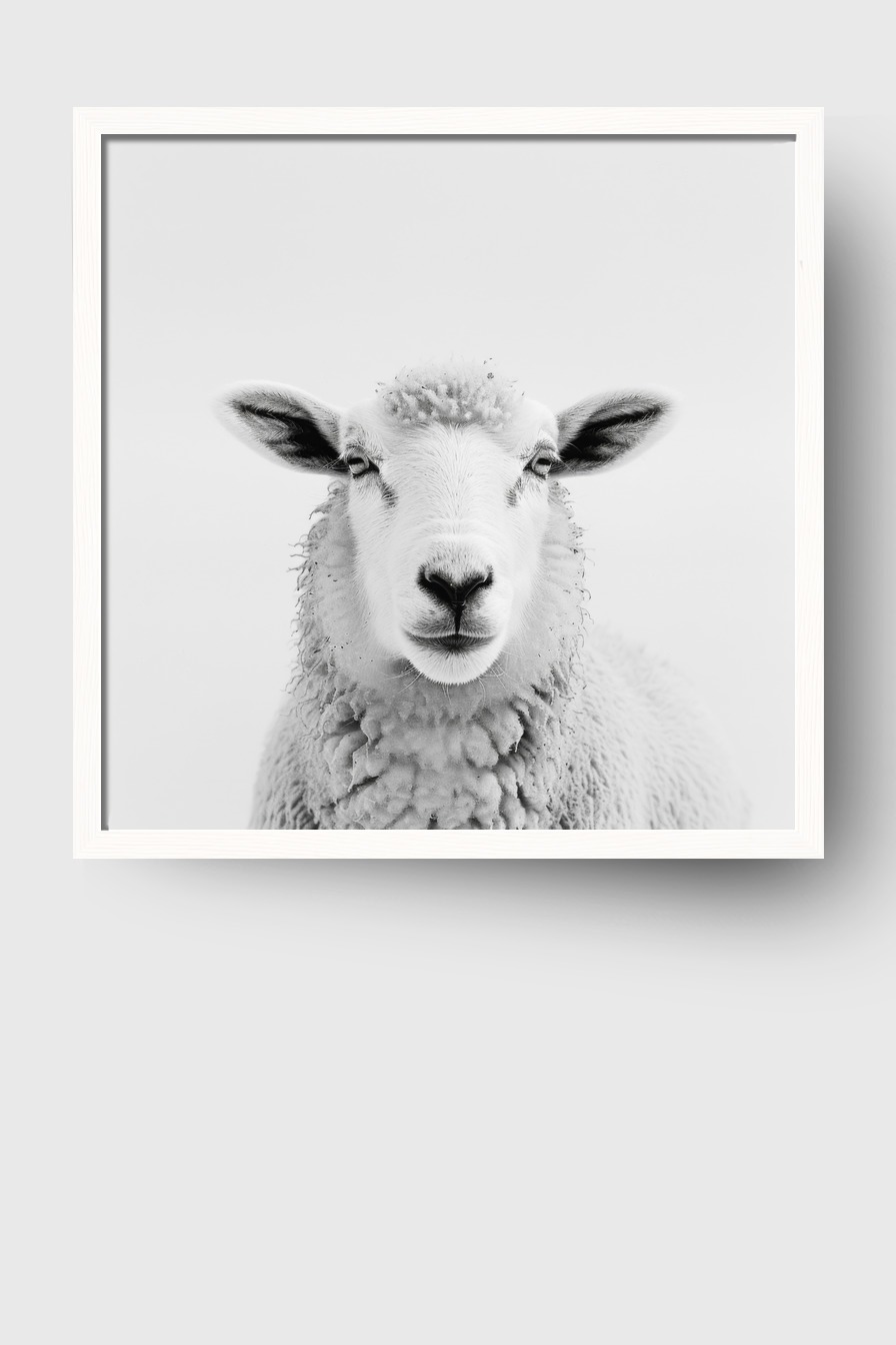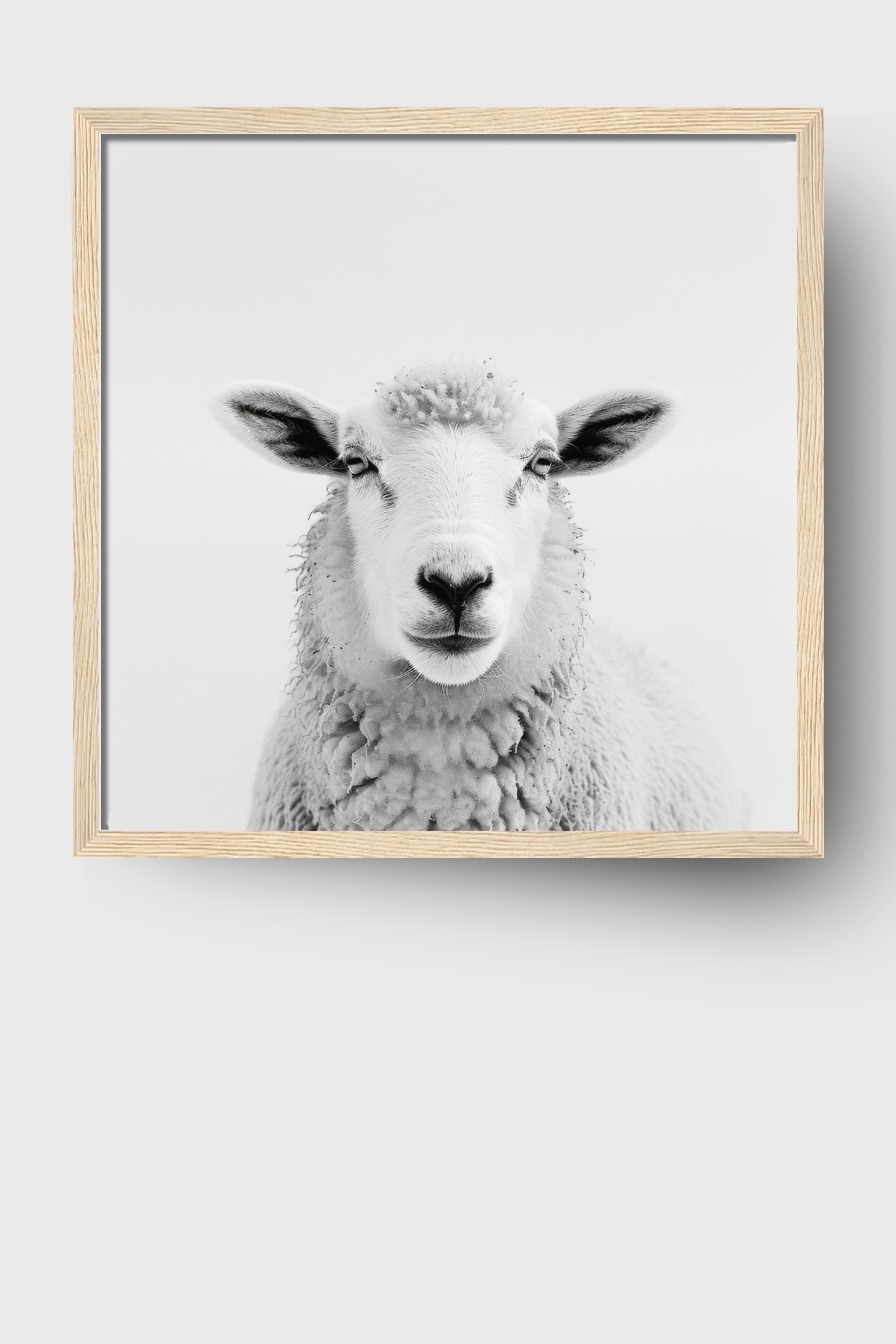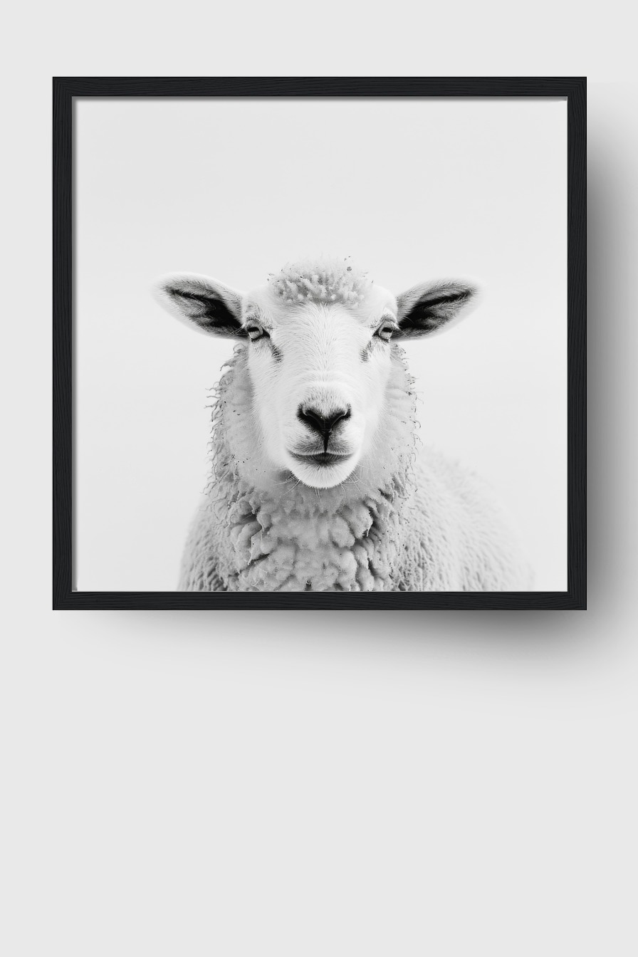 Im Raum zieht das Schaf mit seinem klaren Blick alle Aufmerksamkeit auf sich. Die Ruhe und Symmetrie schaffen eine angenehme Balance und laden zum Verweilen ein.