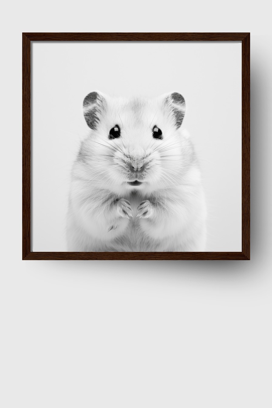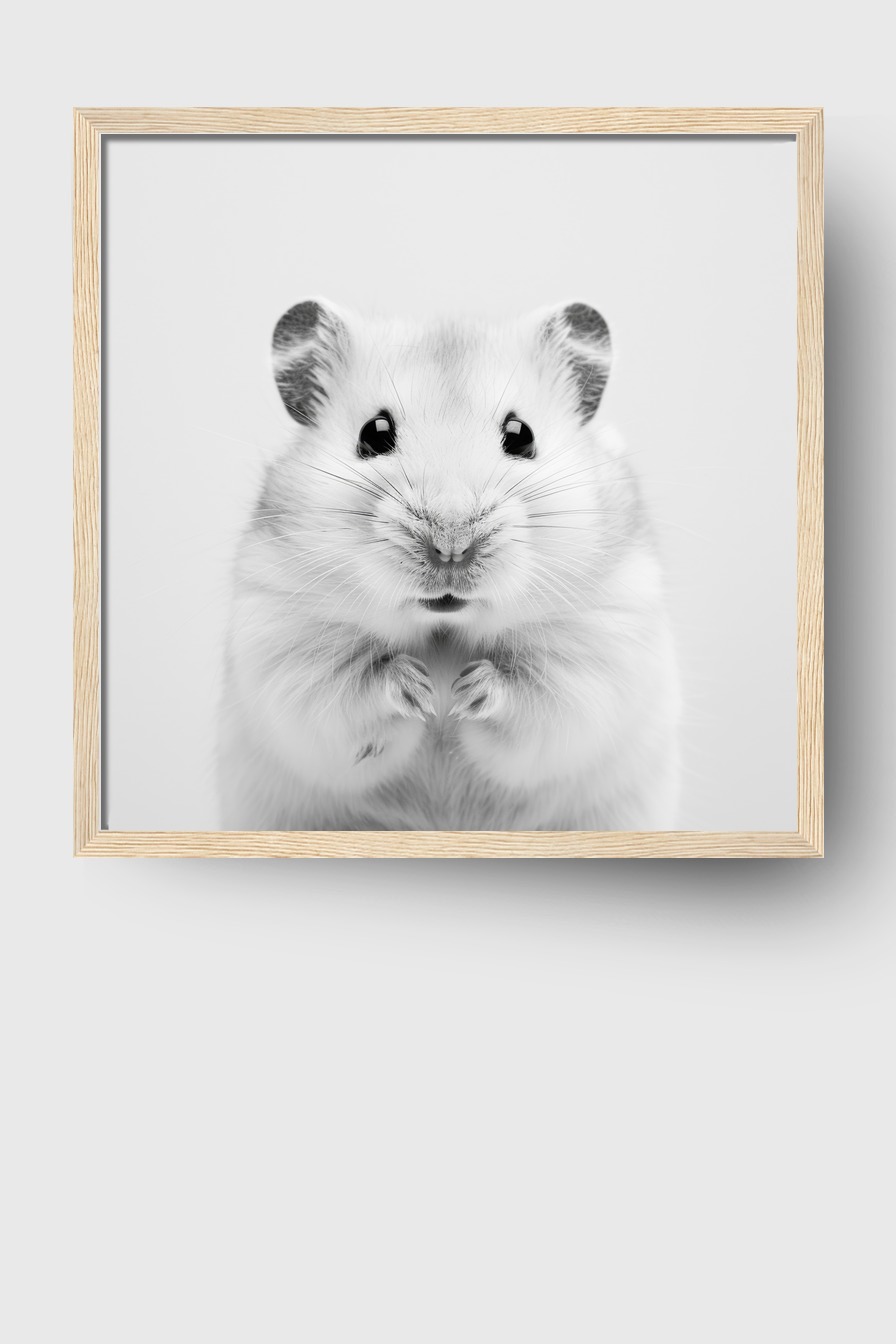 Der aufs Wesentliche reduzierte Hamster setzt klare Akzente an der Wand und bringt eine ruhige, aber lebendige Note in jeden Raum.