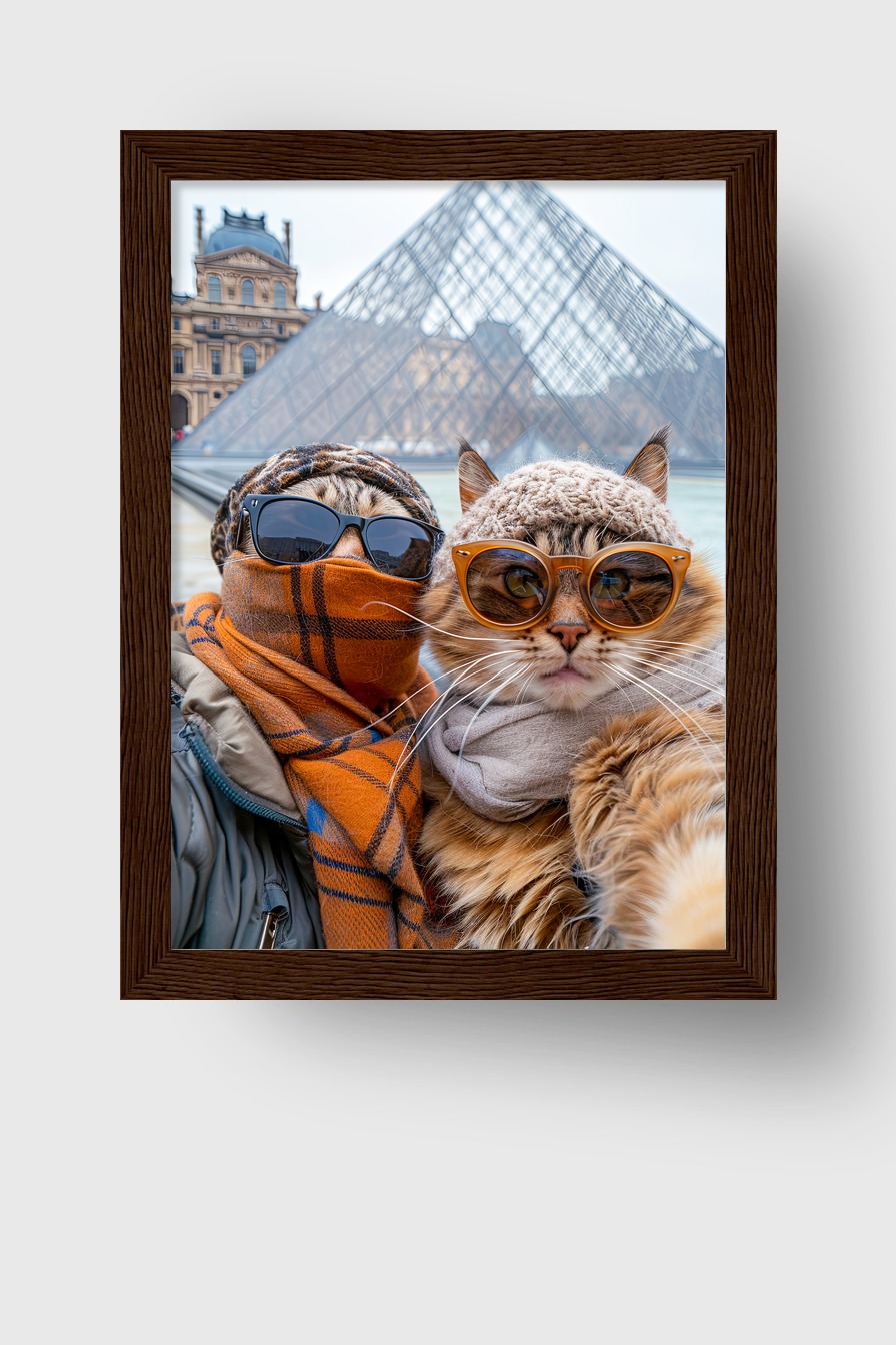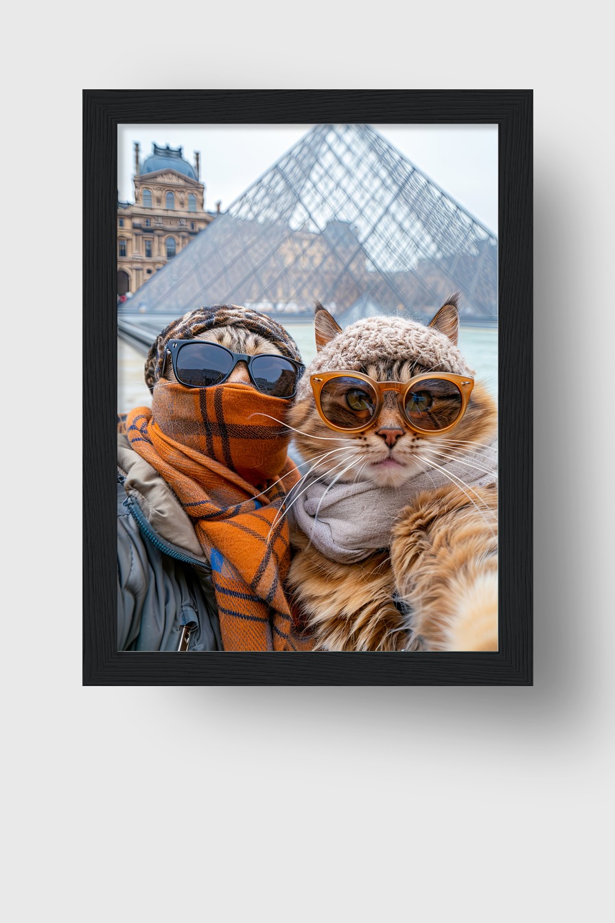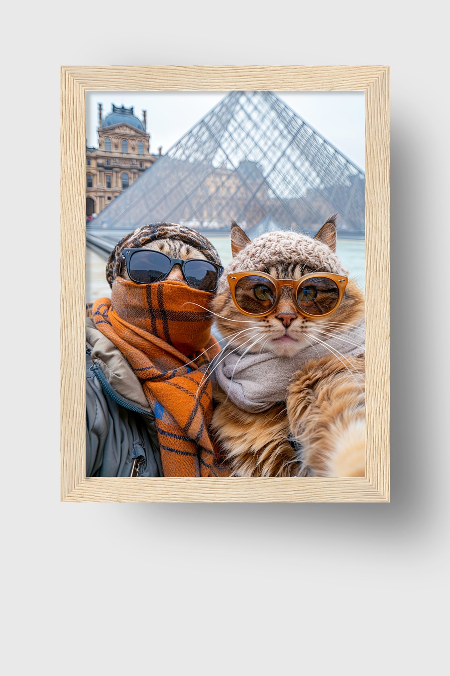 Fotografie Poster Katzen Brillen Mützen Louvre