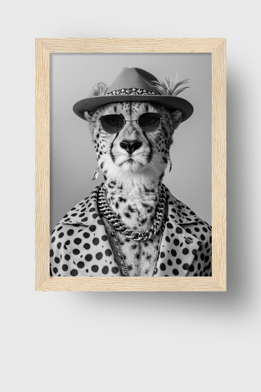 Schreibe die erste Bewertung für “Gepard mit Hut Gerahmt”