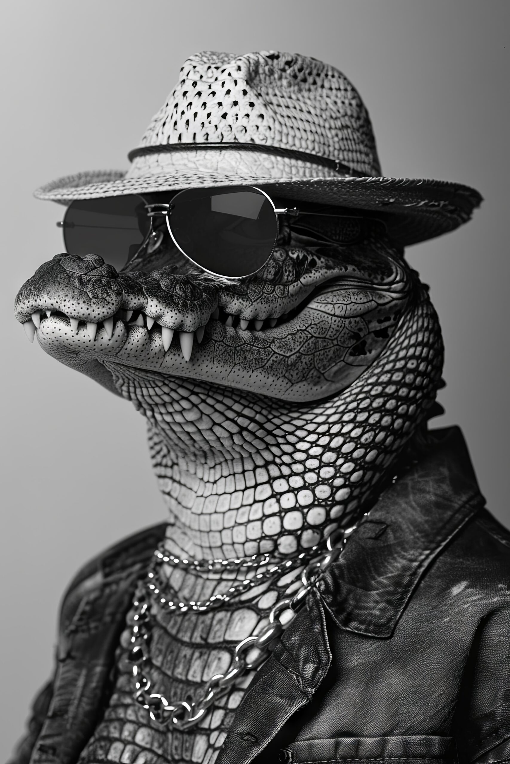 Fotografie Poster Alligator Sonnenbrille schwarz-weiß
