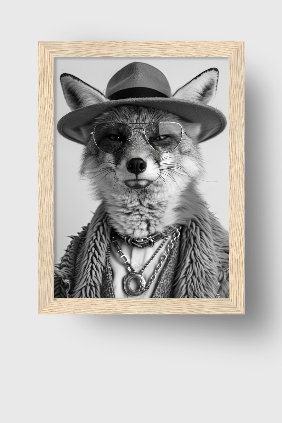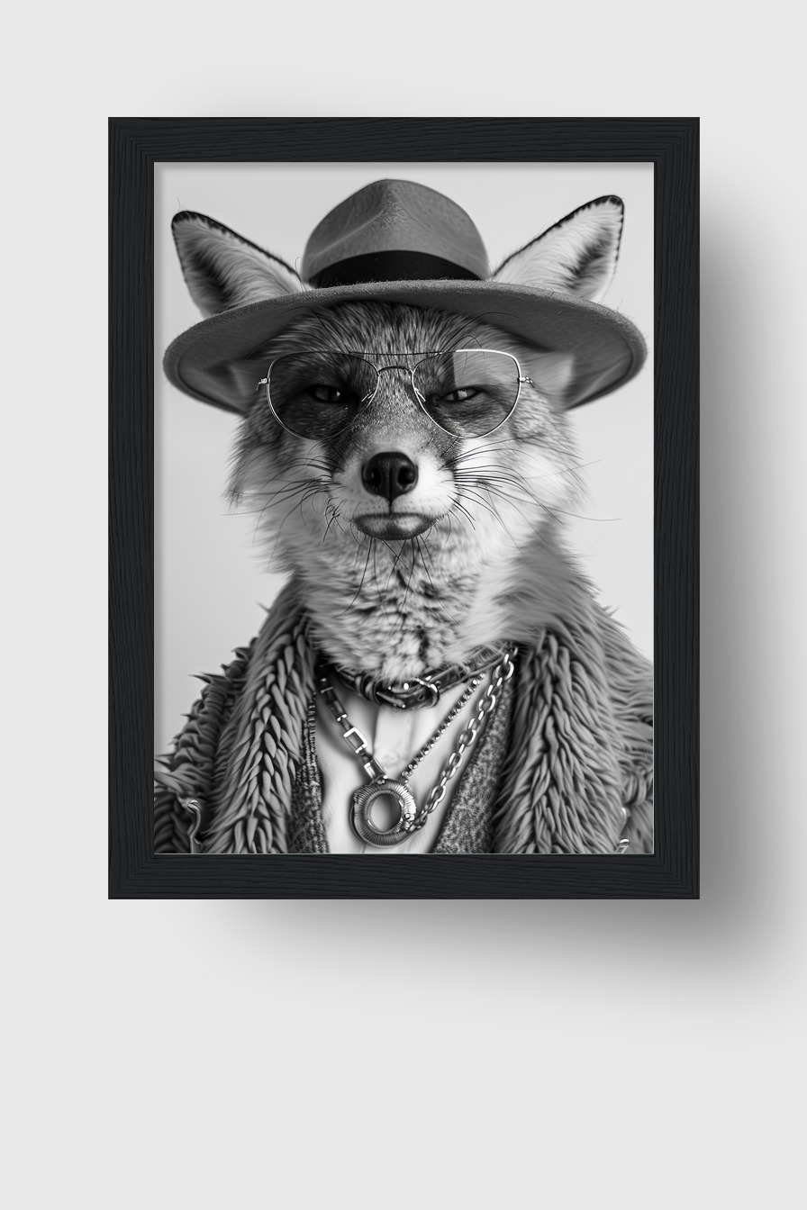 Fotografie Poster Fuchs Schwarzweiß Hut Brille