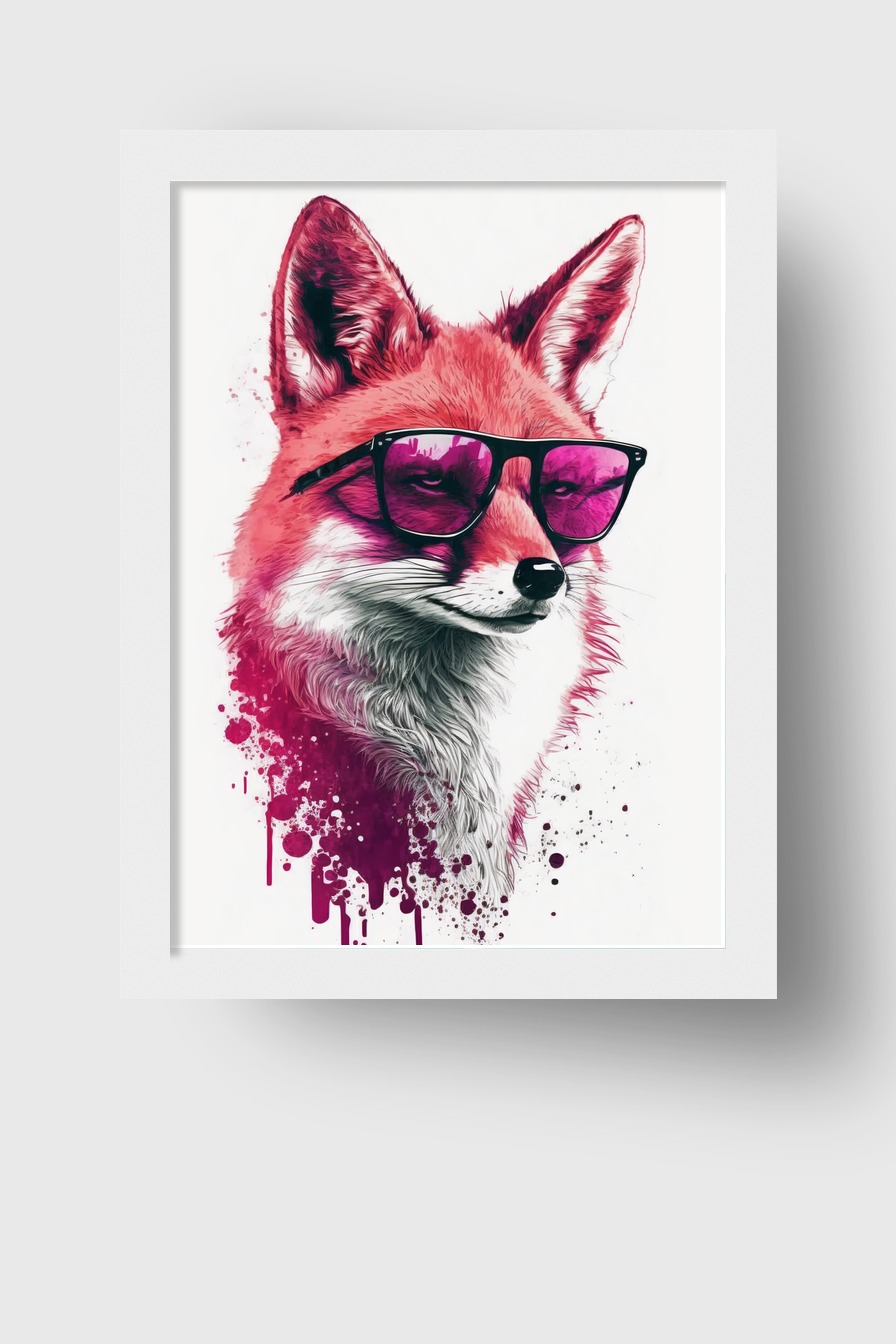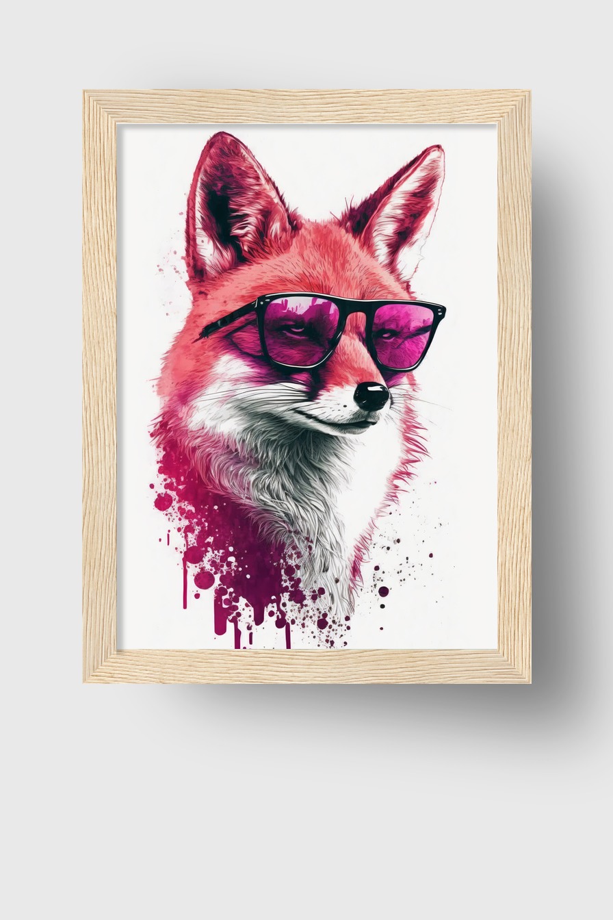 Digitale Kunst Poster Fuchs Sonnenbrille pink schwarz