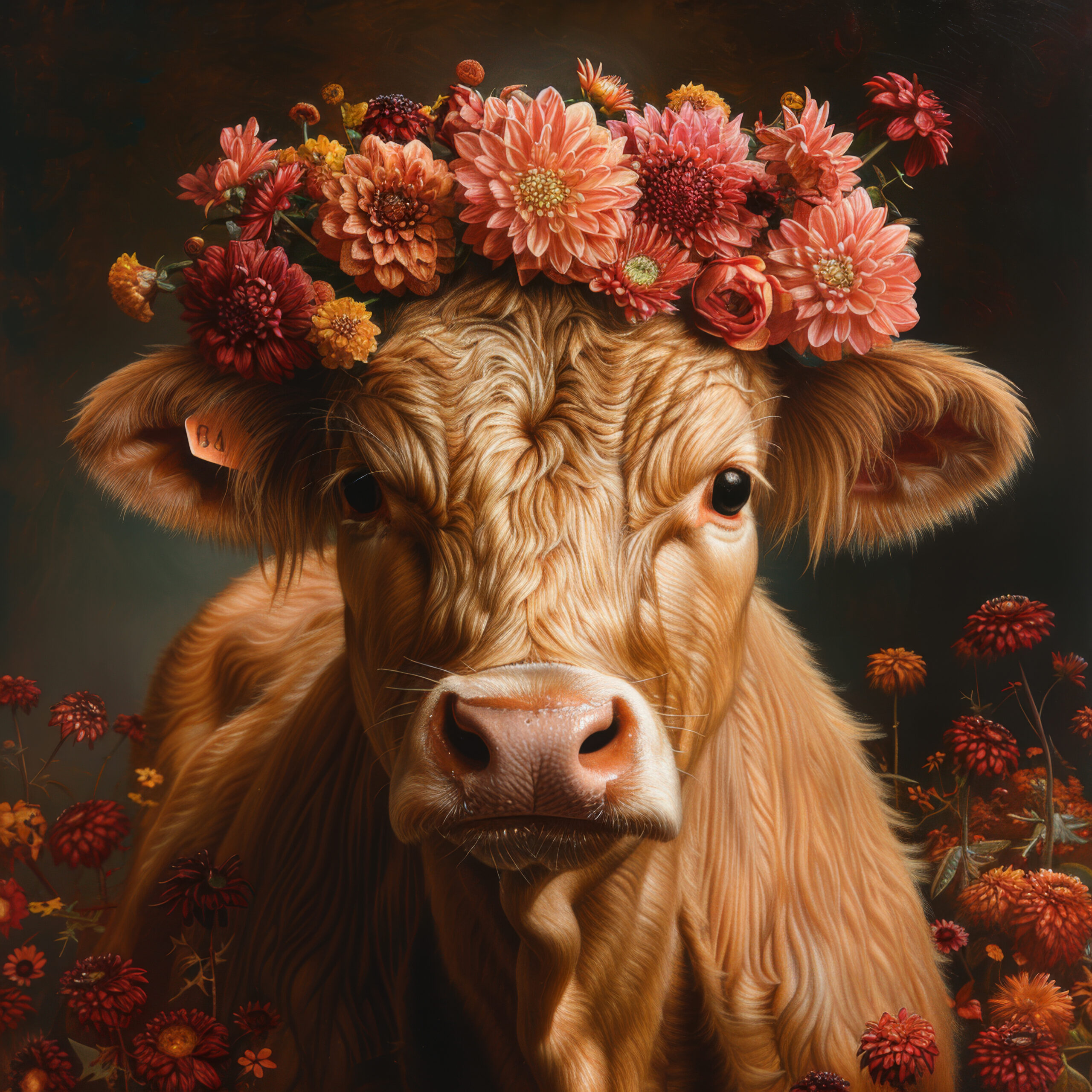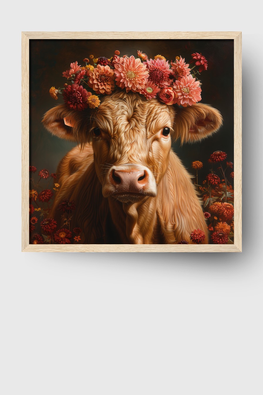 Fotografie Poster Kalb Blumenkranz warm natur