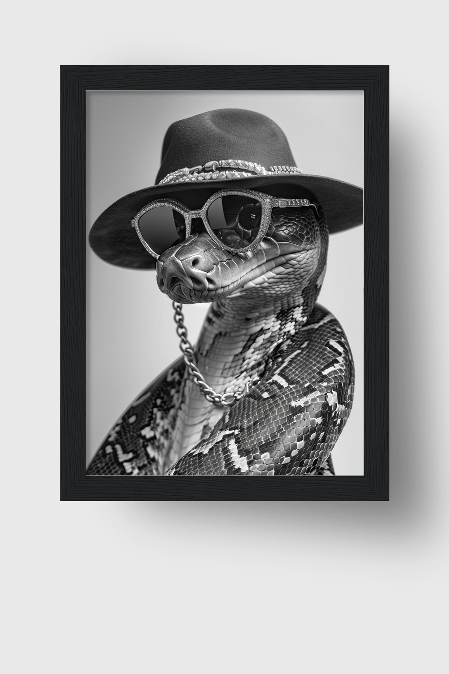 Fotografie Poster Schlange Hut Sonnenbrille Kette schwarz-weiß