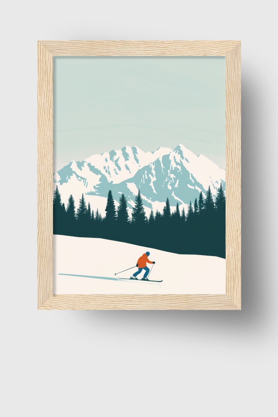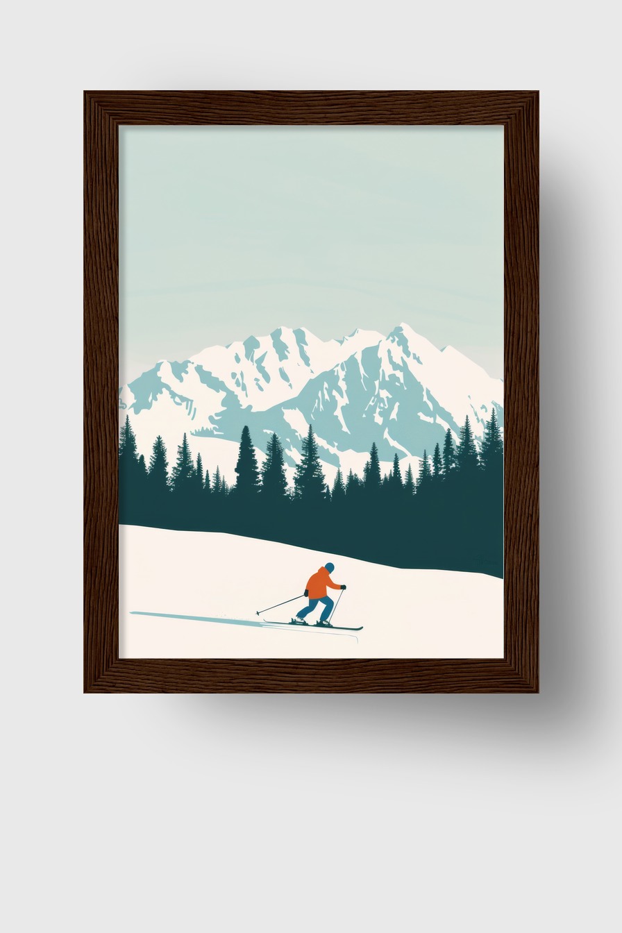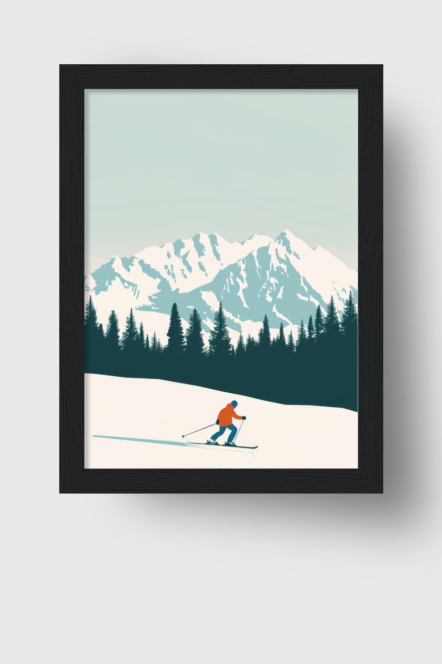 Skifahrer Berg Gerahmt