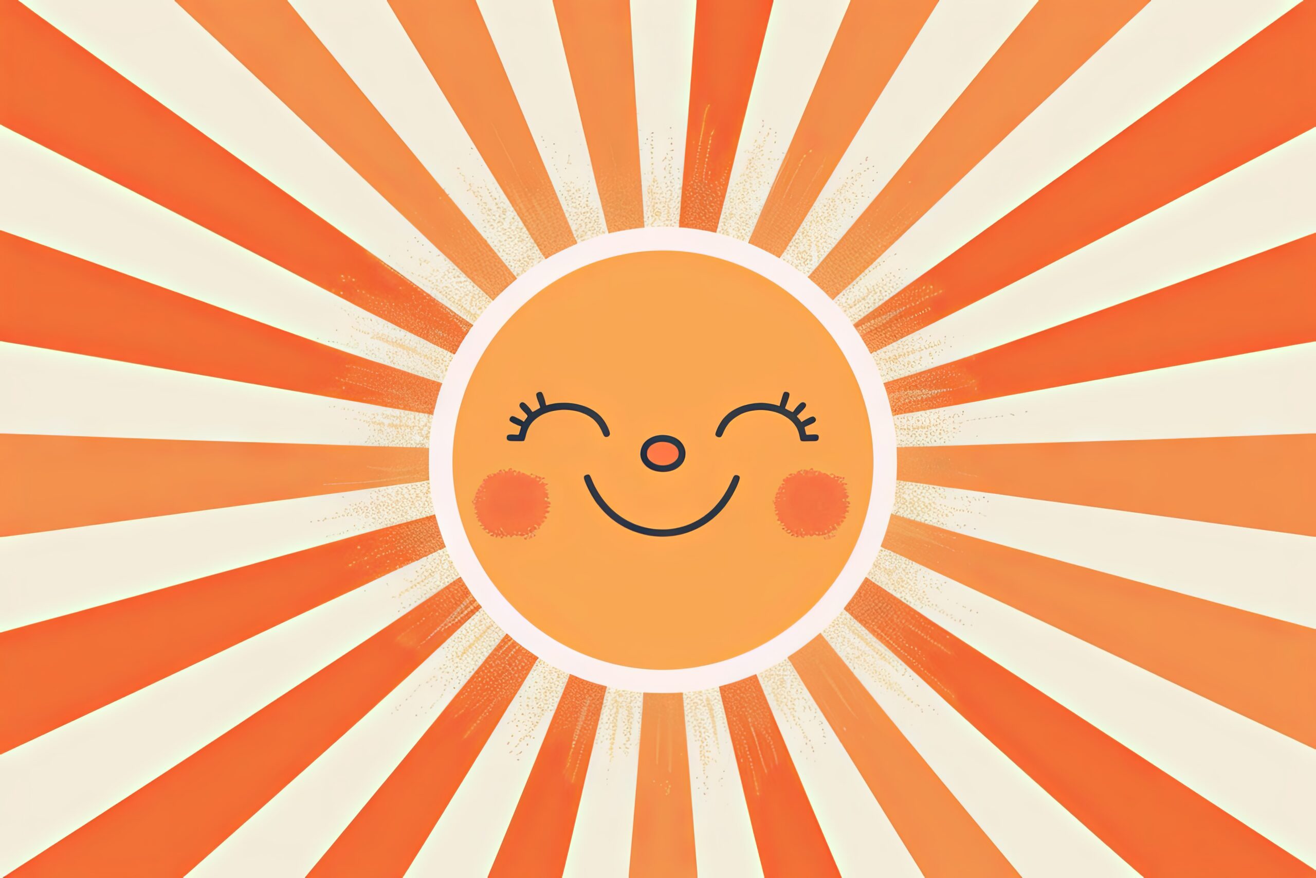 Das warmfarbige Motiv erzeugt mit seinen kräftigen, gleichmäßig verteilten Strahlen und dem liebevollen Gesicht eine lebendige und zugleich sanfte Gesamtwirkung.