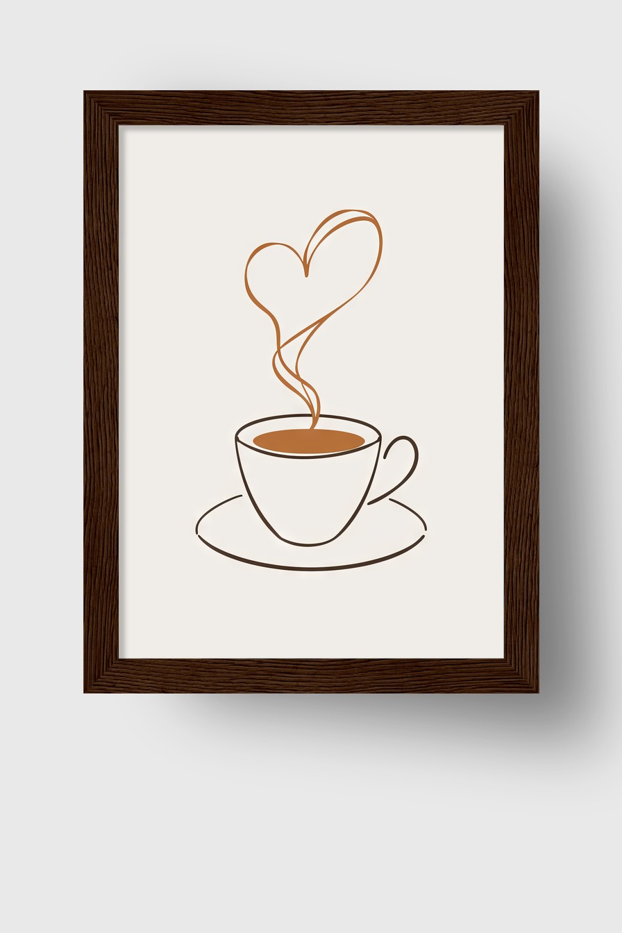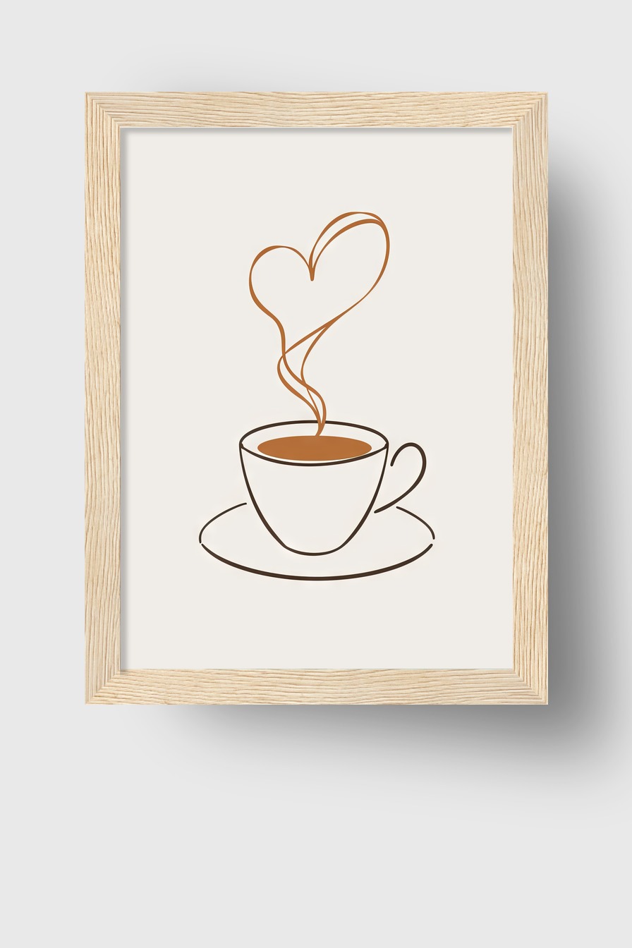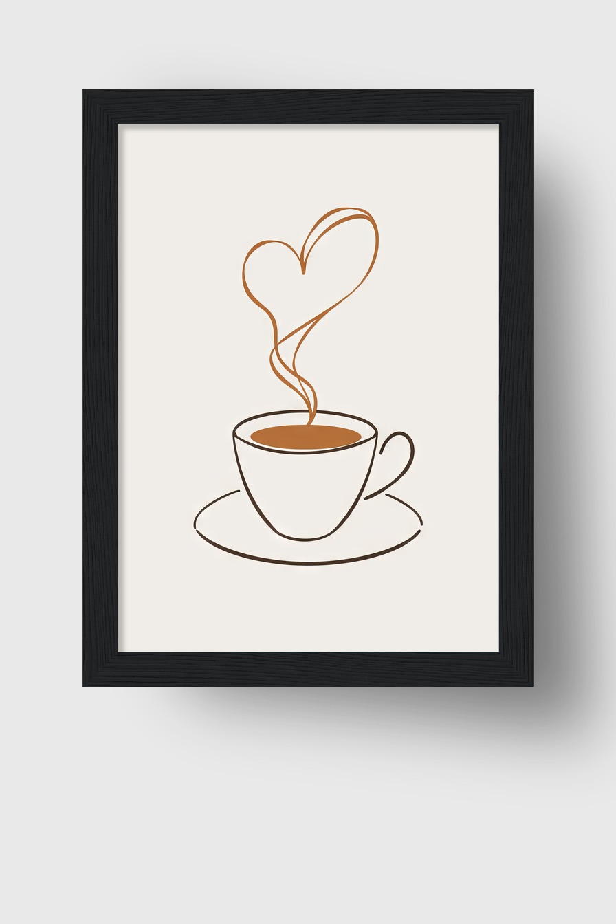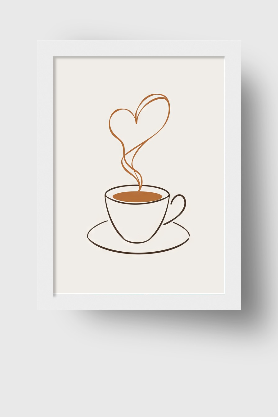 Im Raum setzt die reduzierte Darstellung der Tasse einen beruhigenden Akzent und lädt den Blick zum Verweilen ein, der Herz-Dampf sorgt für eine intime Atmosphäre.