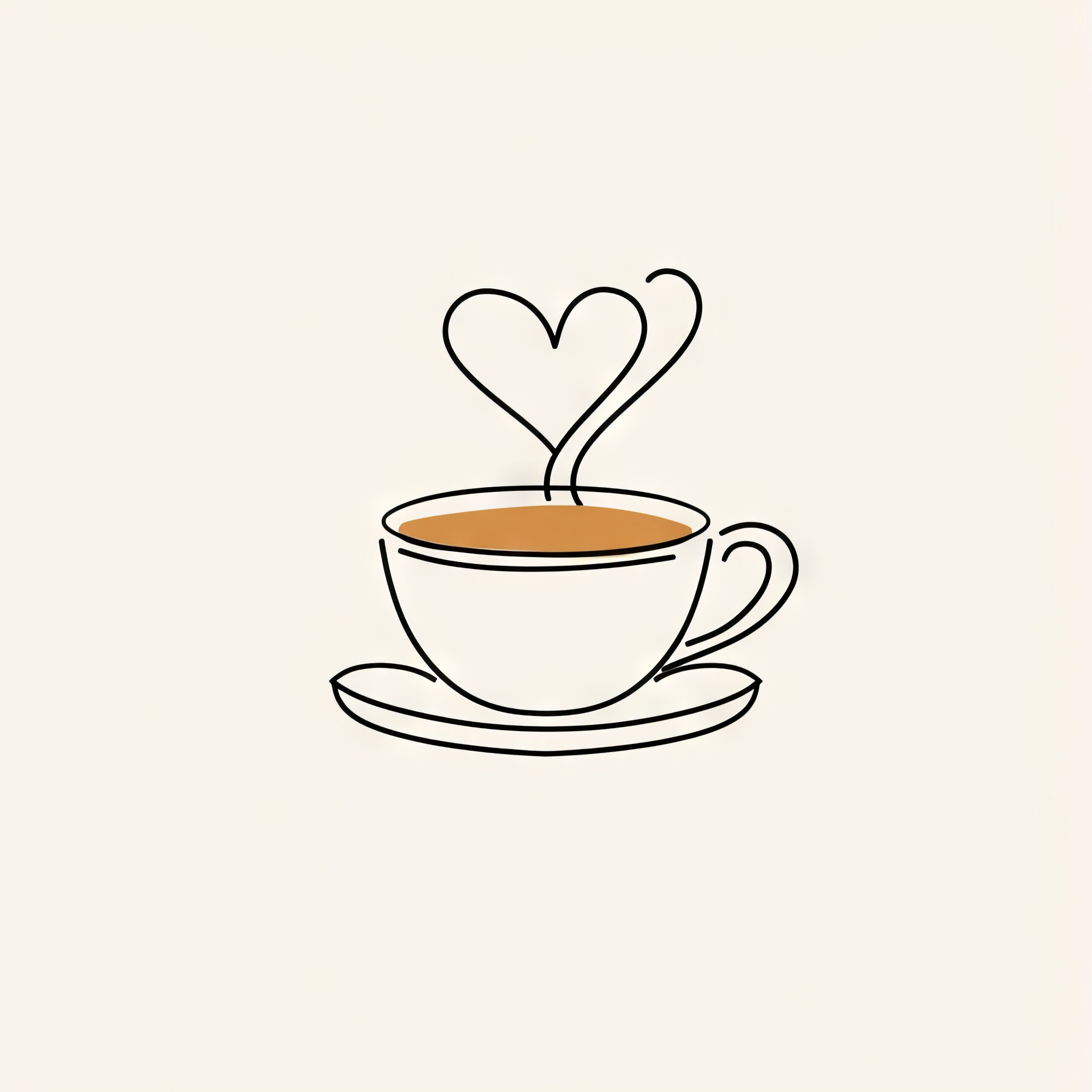 Das Motiv entfaltet durch die minimalistische Linienführung eine zarte Wärme, bei der das Herz aus dem Dampf zum zentralen Blickfang wird und eine freundliche Atmosphäre schafft.