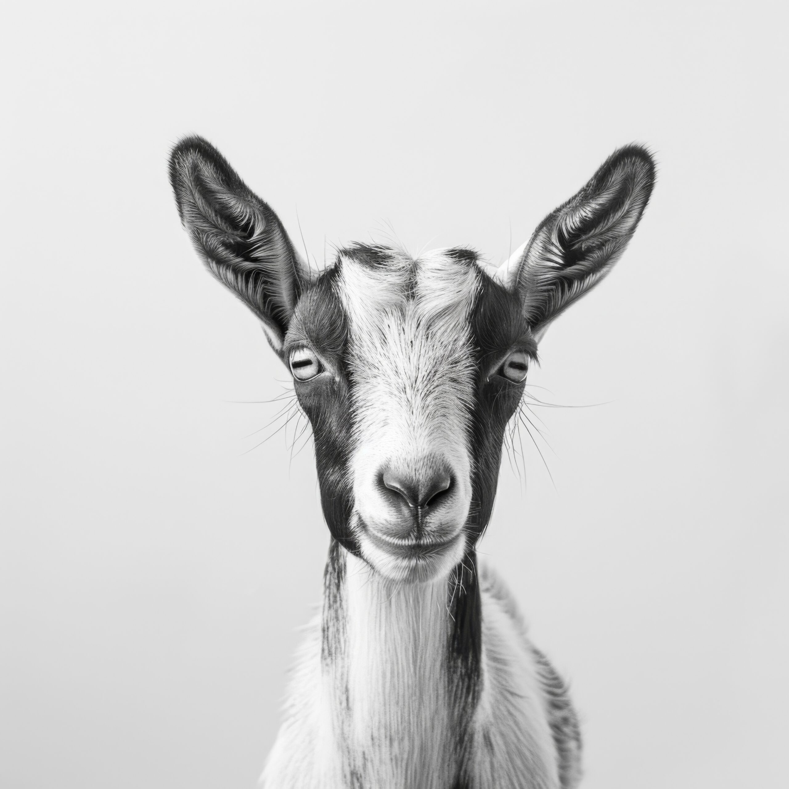Die Zeichnung zeigt eine Ziege frontal mit deutlicher Fellstruktur vor einfarbigem Hintergrund.