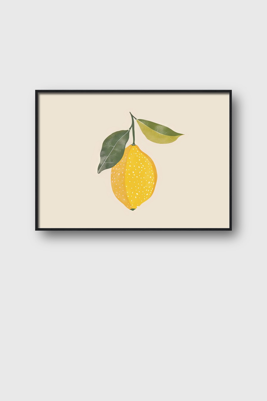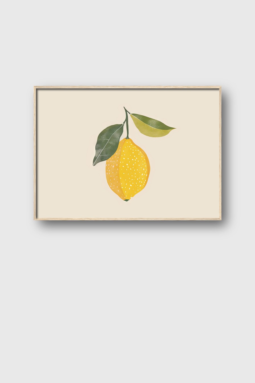Die Zitrone mit den Blättern bildet einen natürlichen Fokus im Raum und strahlt Frische aus.