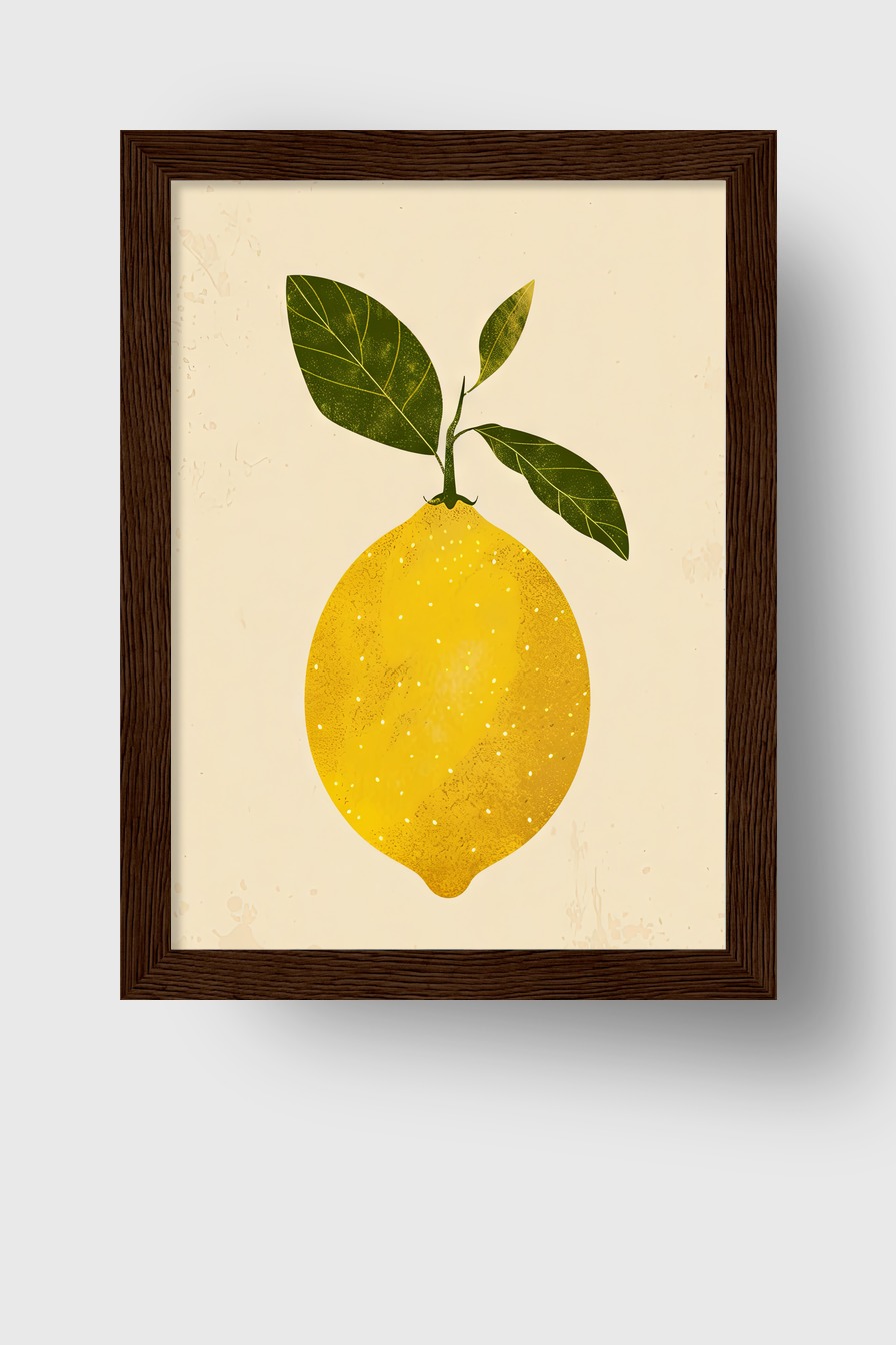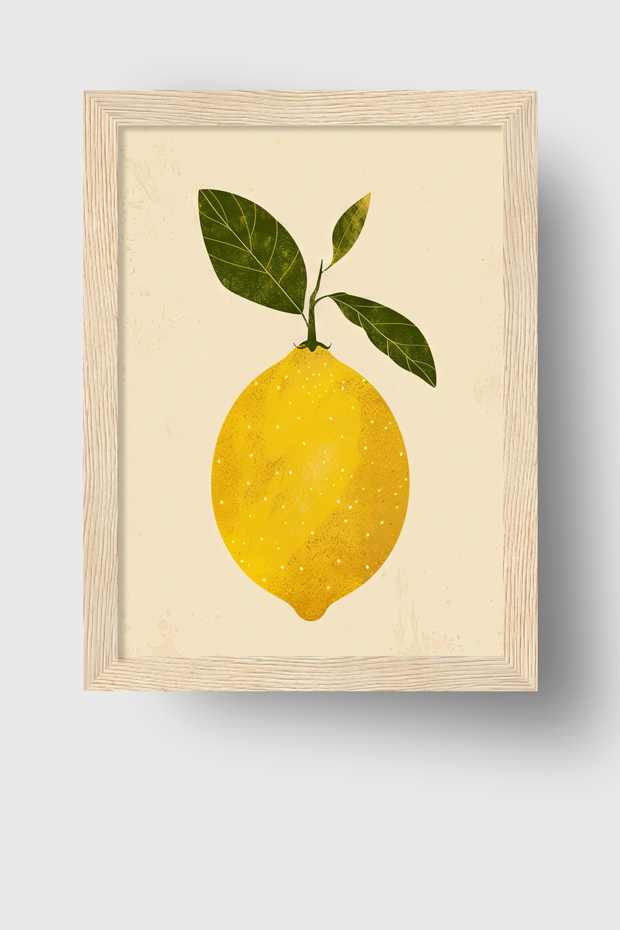 Auf einer Wand wirkt die Zitrone lebendig und bringt einen Hauch von Frische hinein. Die Kombination aus kräftigem Gelb und den dunklen Blättern schafft einen klaren Akzent, der Räume optisch aufhellt.
