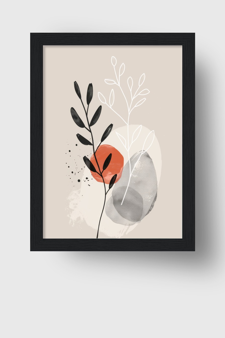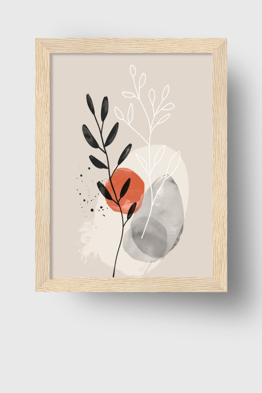 Im Raum wird die Kombination aus sparsam gesetzten Linien und flächigen Formen zu einem ruhigen Blickfang. Die gedeckte Farbgebung passt sich dezent an verschiedenste Umgebungen an, wobei der auffällige Farbpunkt lebendigen Kontrast bringt. Das Bild lädt ein, Details in der Struktur und den Formen zu entdecken.