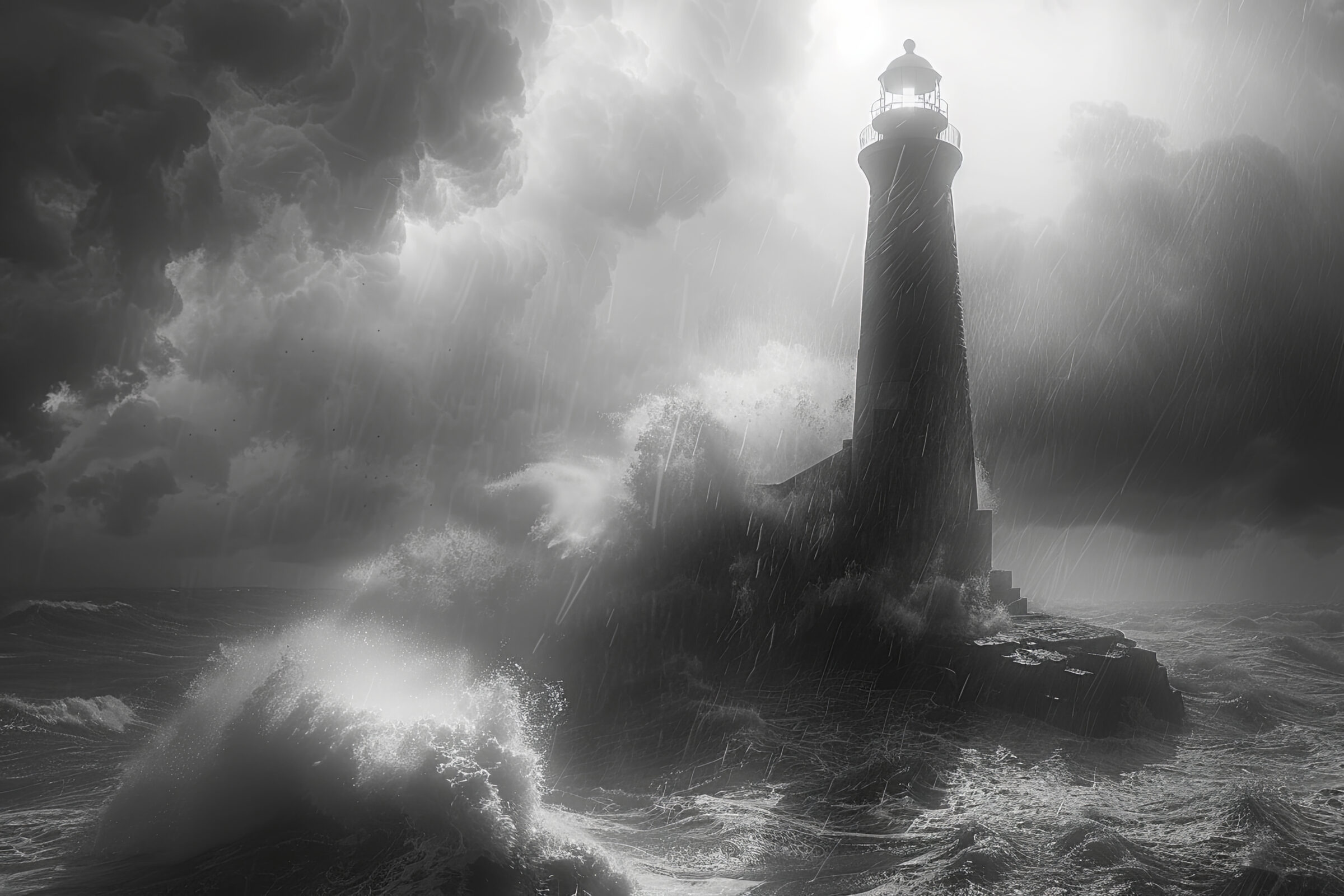 Drei Kompositionsmuster tauchen in dieser Motivgruppe immer wieder auf. Erstens die frontale Symmetrie, bei der eine Brücke mittig auf den Horizont zuläuft. Zweitens das Gegenlicht, das Türme auf reine Umrisse reduziert. Drittens das dramatische Wetter – ein Motiv wie der Leuchtturm im Sturm funktioniert, weil die Gischt die Statik des Turms erst sichtbar macht. Wer diese grafische Qualität schätzt, sollte sich auch den Überblick über gerahmte Architekturmotive ansehen, bevor er sich festlegt.