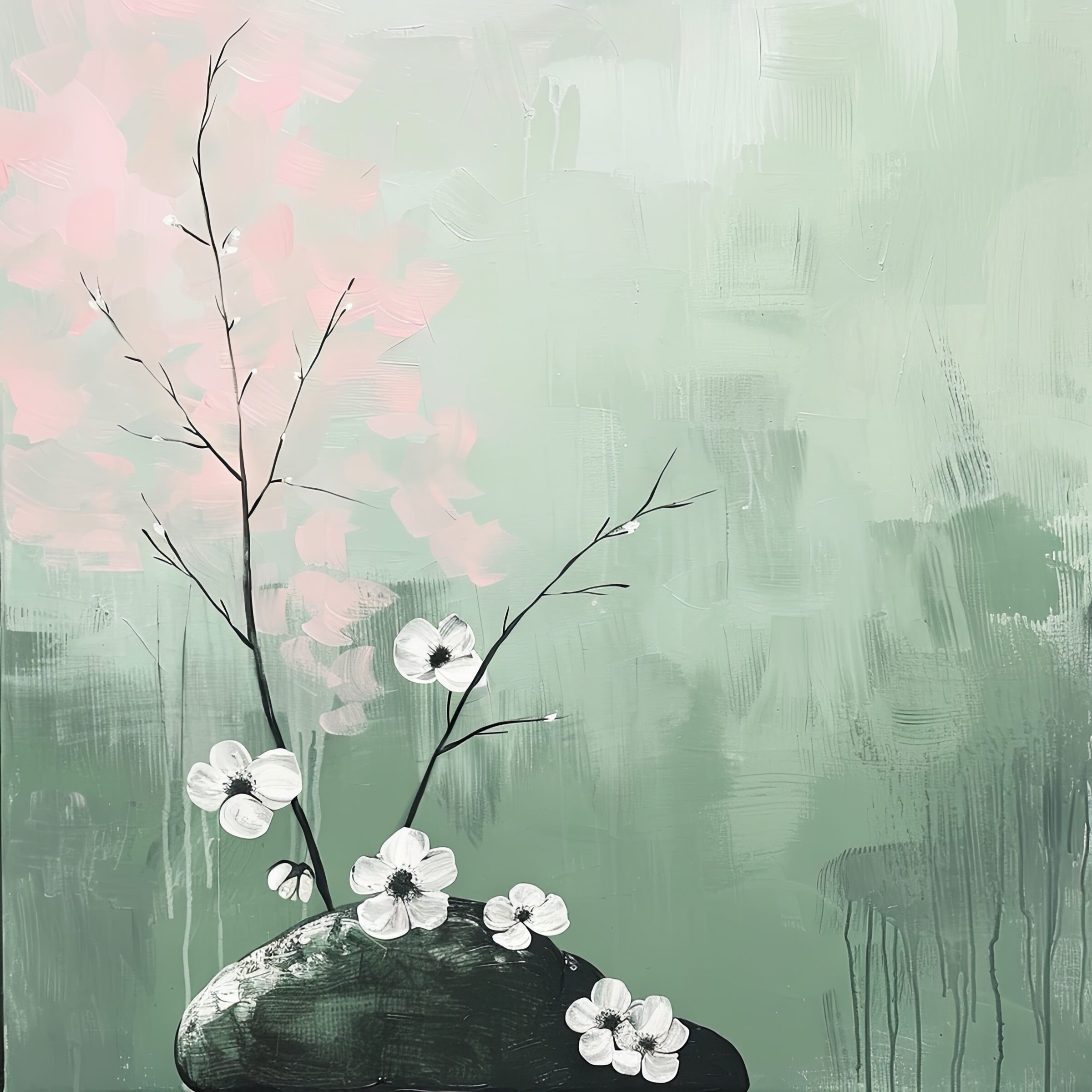Die Ästhetik dieser Kategorie ist kein Zufall, sondern Erbe. Die Stilllebentradition des niederländischen Barock hat gelehrt, wie ein einzelner Gegenstand – ein Zweig, ein Stein, eine Frucht – zum Träger einer ganzen Stimmung werden kann. Genau darauf baut ein Motiv wie Blumenzweig Stein Gerahmt auf: zurückgenommener Hintergrund, klare Lichtführung, haptische Oberfläche. Wer sich für diese Linie interessiert, findet verwandte Anklänge auch bei mediterran inspirierten Wandbildern mit Rahmen, die mit ähnlicher Farbruhe arbeiten, aber wärmer getönt sind.